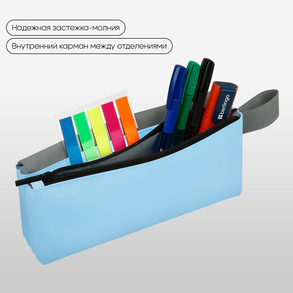Пенал мягкий 2 отделения, 1 карман, 225*110*45 мм, Berlingo "Aquamarine", полиэстер с силиконом