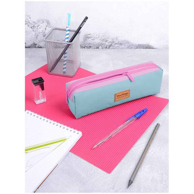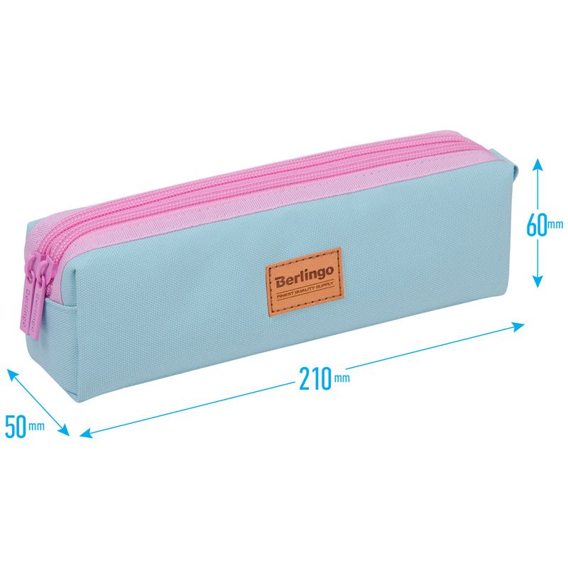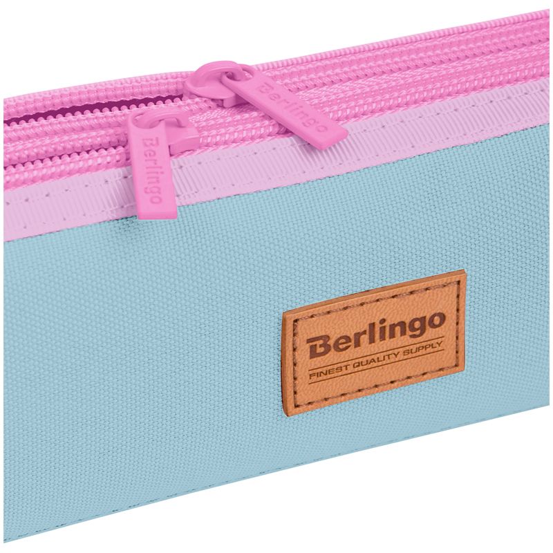 Пенал мягкий 2 отделения, 210*60*50 Berlingo "Pinky blue", полиэстер, цветные молнии