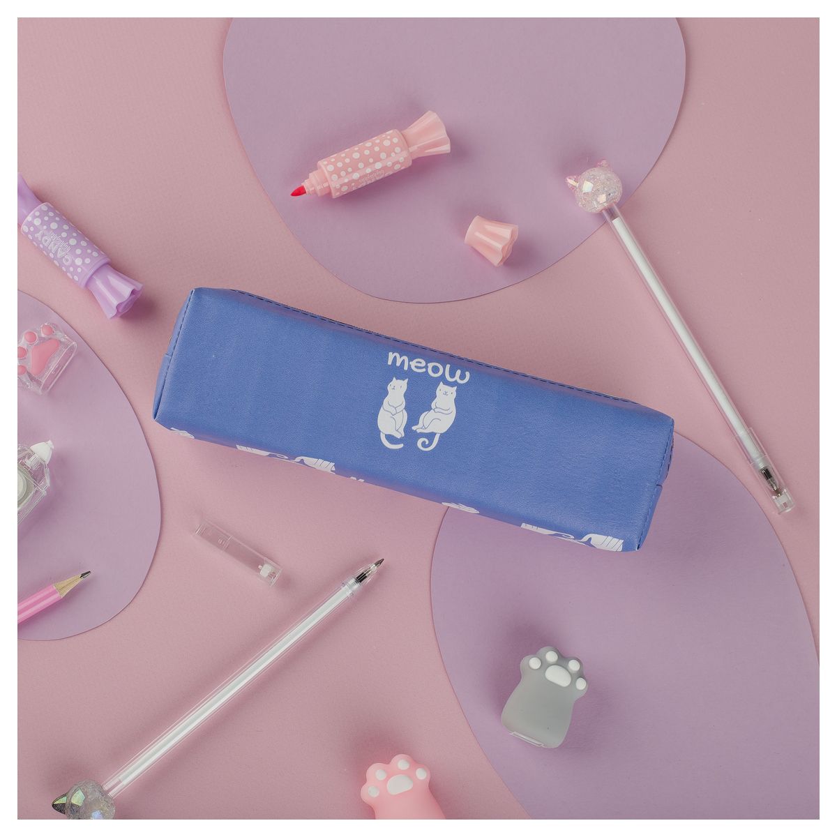 Пенал мягкий 200*55*40 MESHU "Meow", искусственная кожа