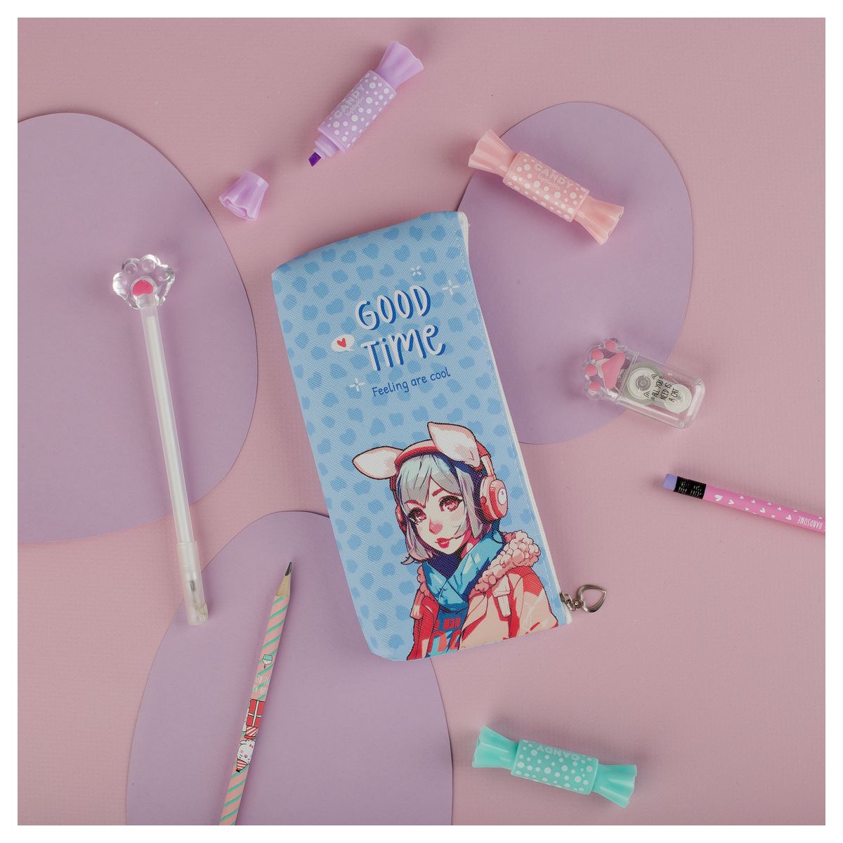 Пенал мягкий 200*85*30 MESHU "Good time blue", искусственная кожа