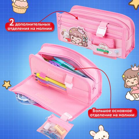 Пенал мягкий BRAUBERG KIDS, 3 отделения, кармашек на карабине, полиэстер, Sweet friends, 22х10х7 см, 273558