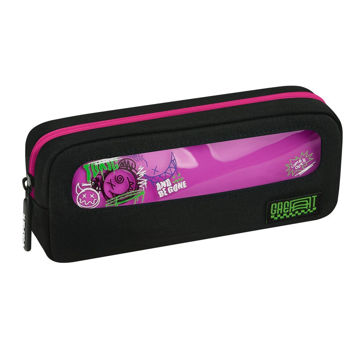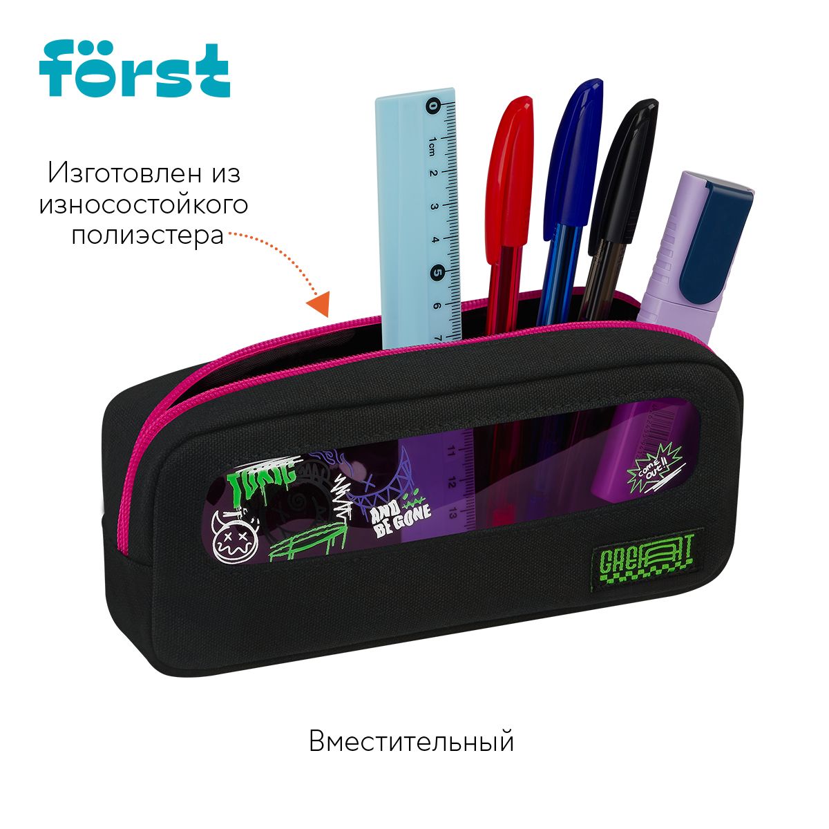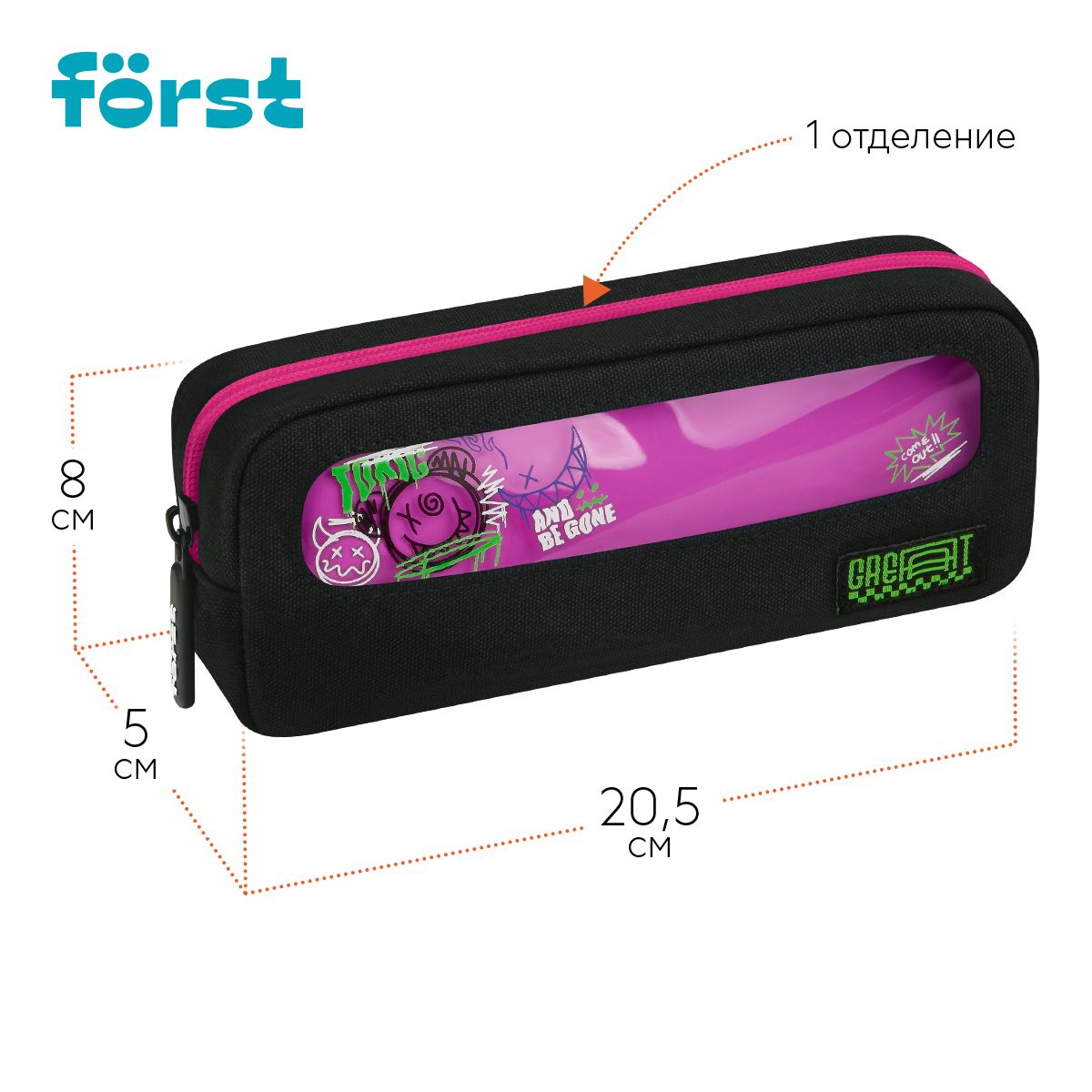 Пенал мягкий с прозрачным окошком, 1 отделение, 205*80*50 Först "Crazy Emoji", текстиль с ПВХ