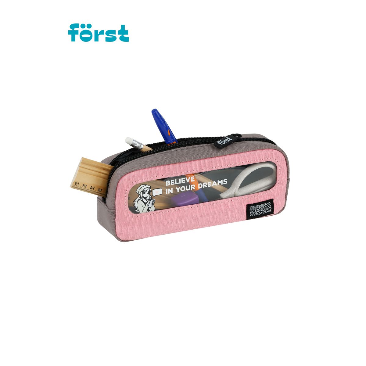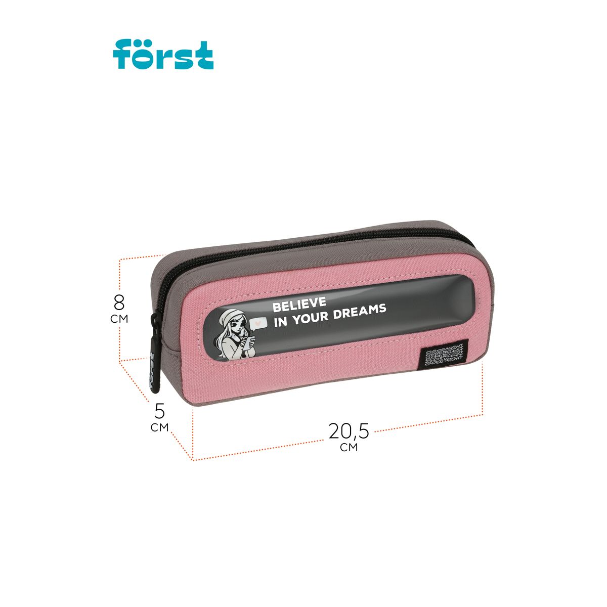 Пенал мягкий с прозрачным окошком, 1 отделение, 205*80*50 Först "Pink dreams", текстиль с ПВХ