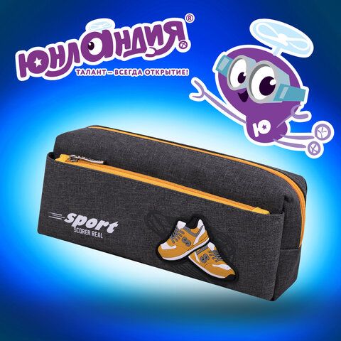 Пенал мягкий ЮНЛАНДИЯ, 2 отделения, полиэстер, "Sport scorer", серый, 20х9х6 см, 271575