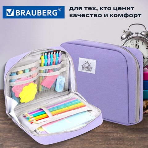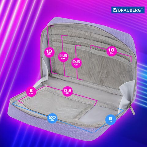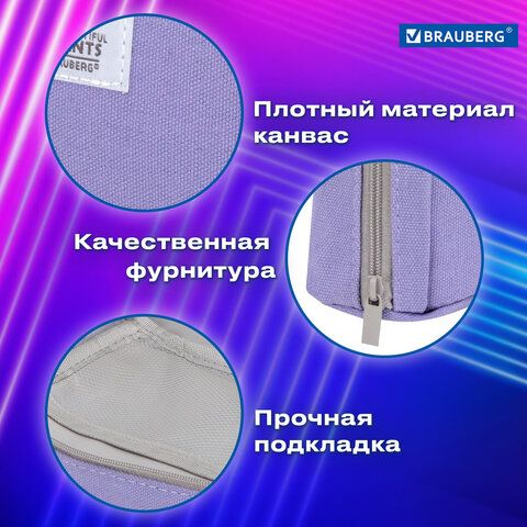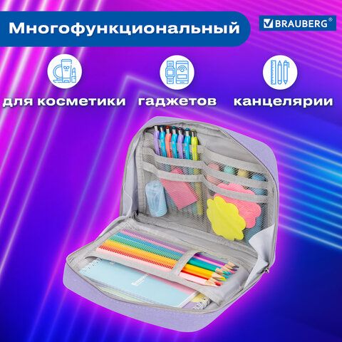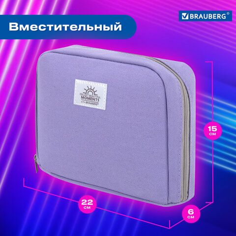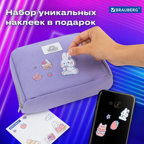 Пенал-органайзер BRAUBERG, 1 отделение, наклейки, молния вокруг, канвас, 22x15х4 см, черный, 273594