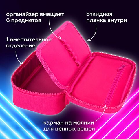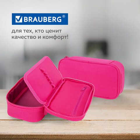 Пенал-органайзер BRAUBERG, 1 отделение, органайзер, полиэстер, 22х11,5x6см, розовый, 272310