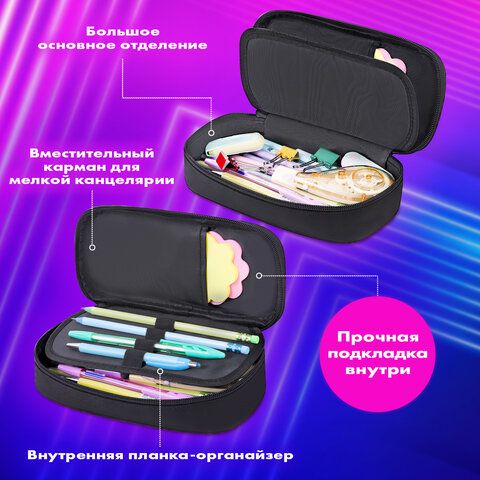 Пенал-органайзер BRAUBERG, 1 отделение, откидная планка, полиэстер, 22х10х6 см, Total black, 273577