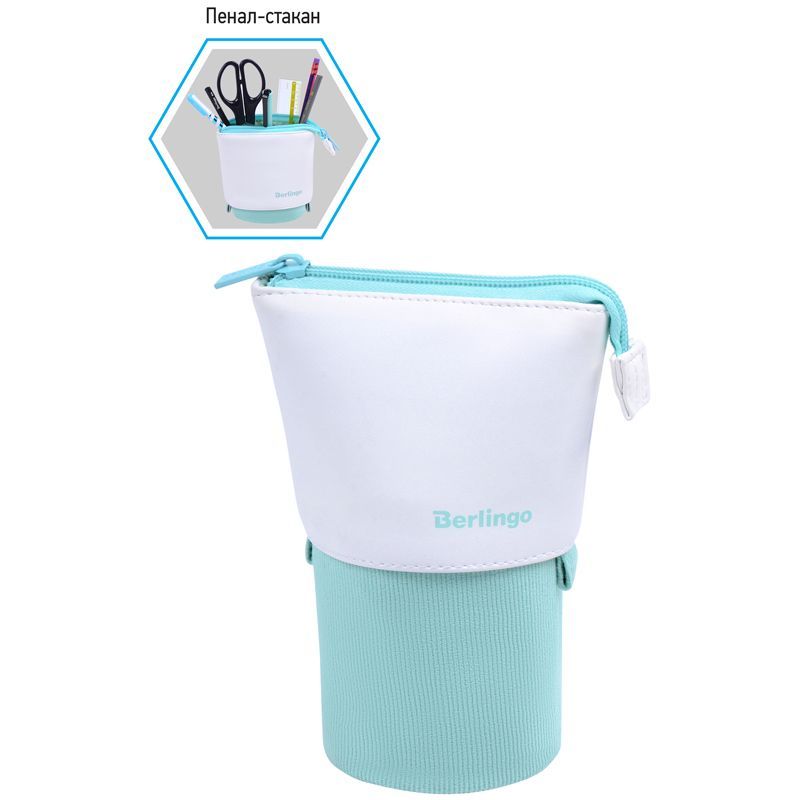 Пенал-стакан 1 отделение, 170*75 Berlingo "Mint case", вельвет, экокожа