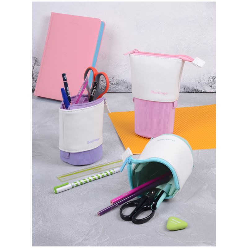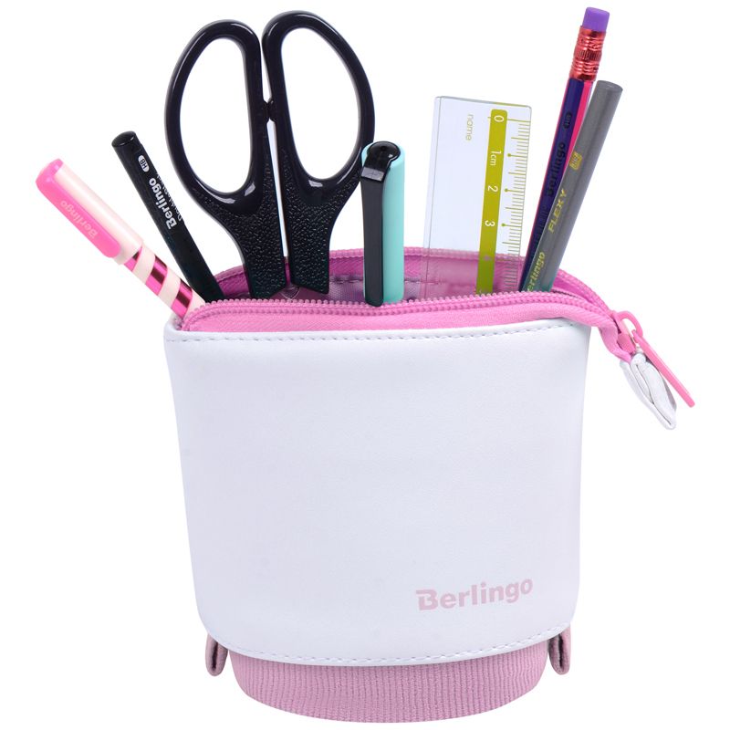 Пенал-стакан 1 отделение, 170*75 Berlingo "Pink case", вельвет, экокожа