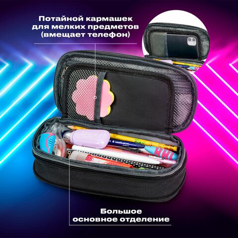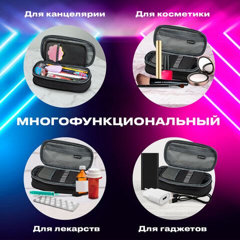 Пенал-трансформер BRAUBERG, полиэстер, 22х10х3 см, "Charcoal gray", 271561