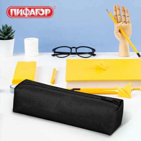 Пенал-тубус ПИФАГОР на молнии, ткань, черный, 22х5 см, 272255