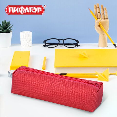 Пенал-тубус ПИФАГОР на молнии, ткань, красный, 22х5 см, 272256