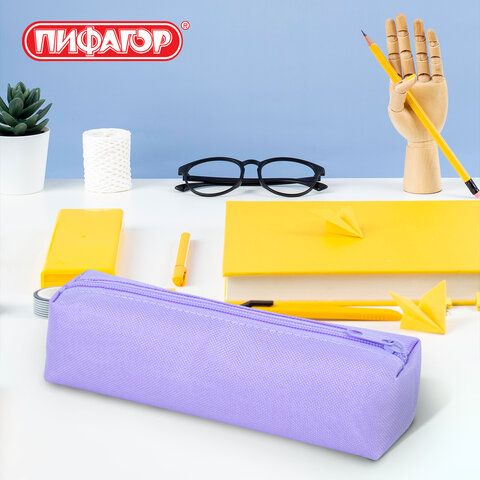 Пенал-тубус ПИФАГОР на молнии, ткань, пастельно-фиолетовый, 22х5 см, 272259
