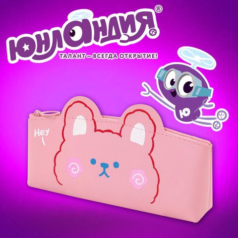Пенал ЮНЛАНДИЯ ЮНИОР, 1 отделение, искусственная кожа, Pink bear, 20х9х7 см, 273818