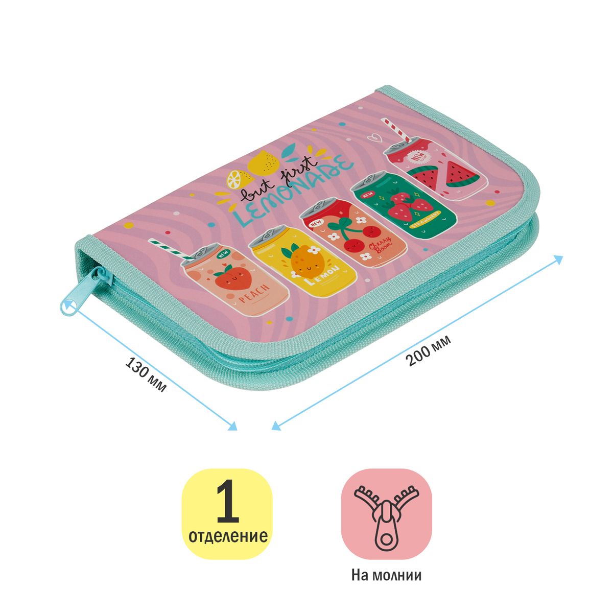 Пенал 1 отделение, 200*130 ArtSpace "Lemonade", ламинированный картон
