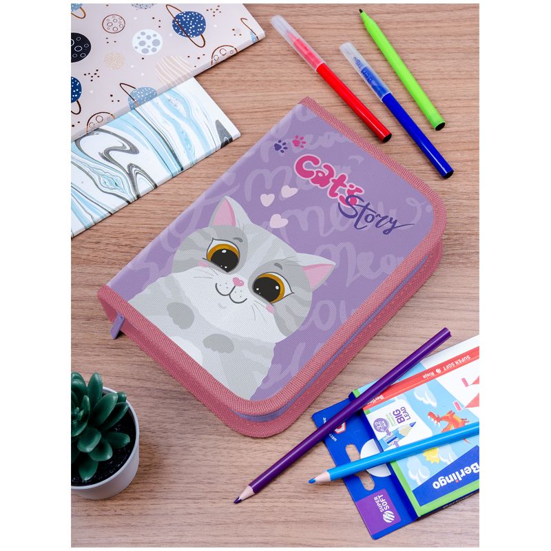Пенал 1 отделение, 200*140*40 Berlingo "Cute cat", 2 откидные секции, полиэстер