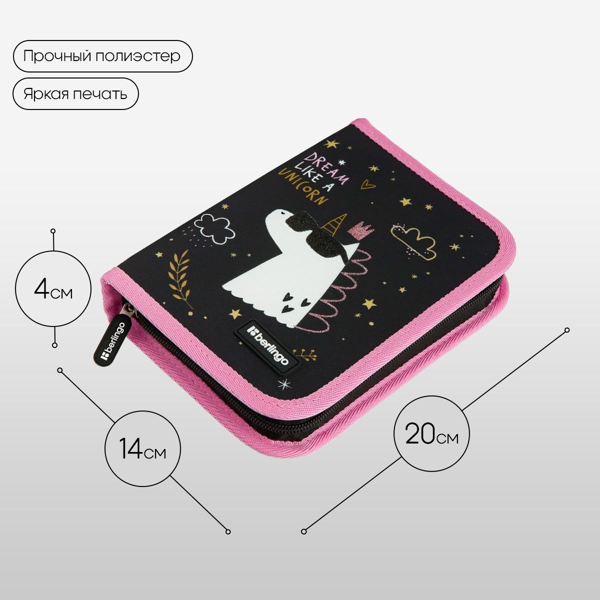 Пенал 1 отделение, 200*140*40 Berlingo "Dream Like A Unicorn", дополнительная откидная секция, полиэстер