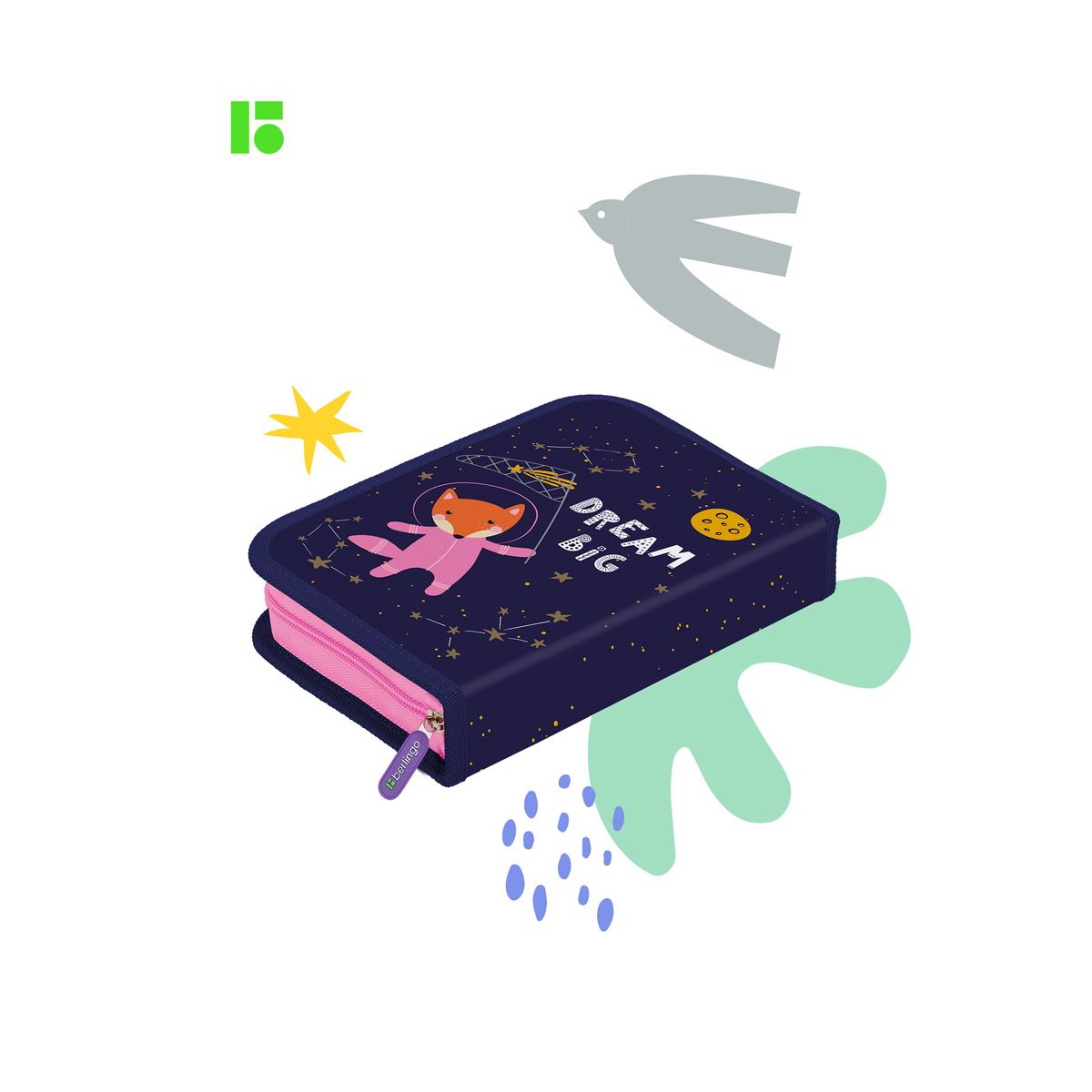 Пенал 1 отделение, 200*140*40 Berlingo "Fox Dreamer", дополнительная откидная секция, полиэстер