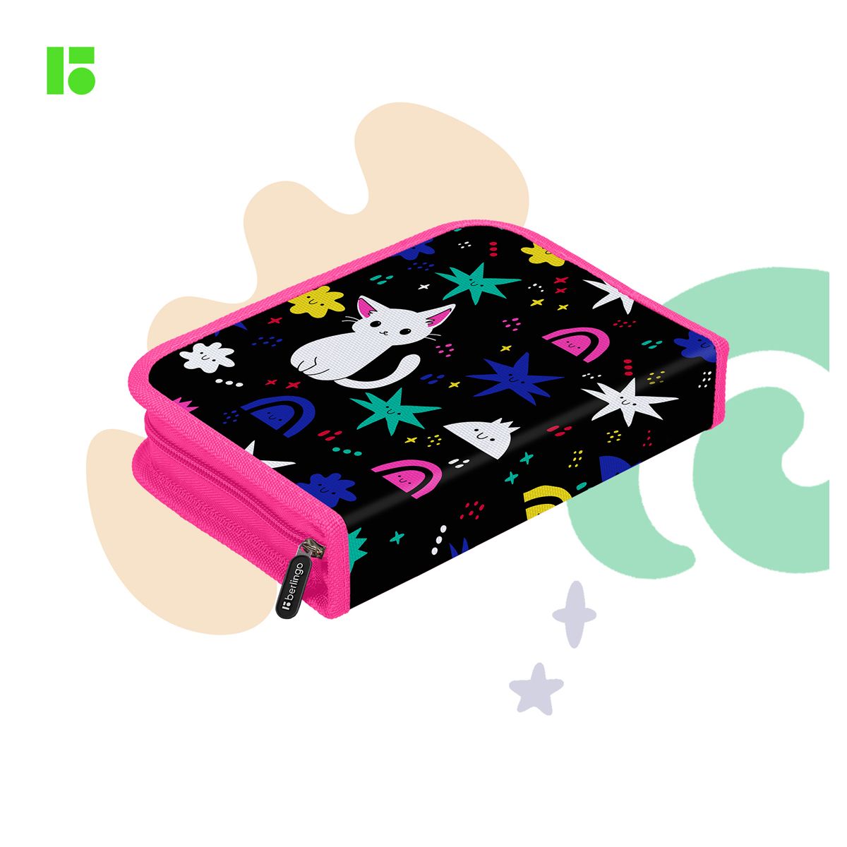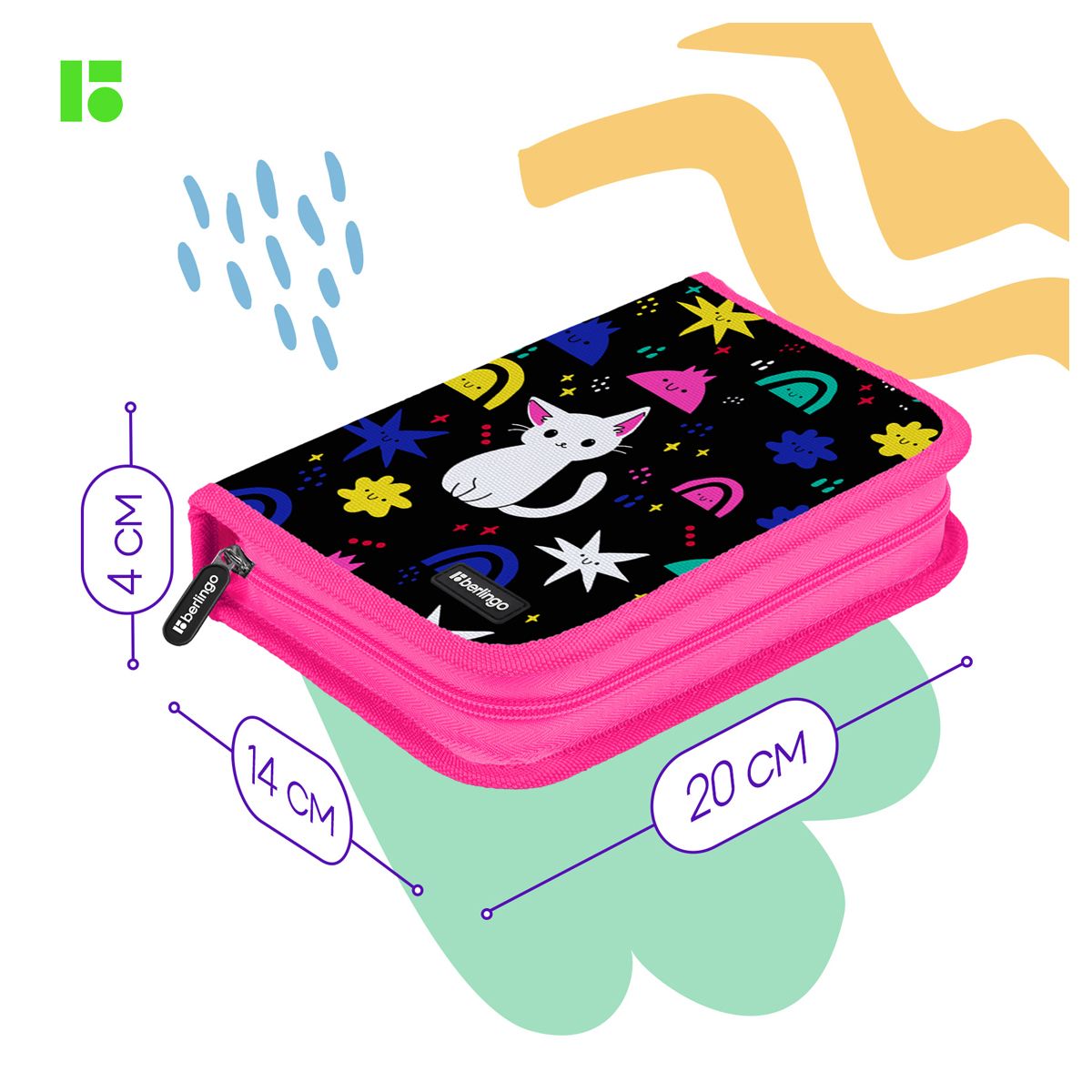 Пенал 1 отделение, 200*140*40 Berlingo "Funny colors", дополнительная откидная секция, полиэстер