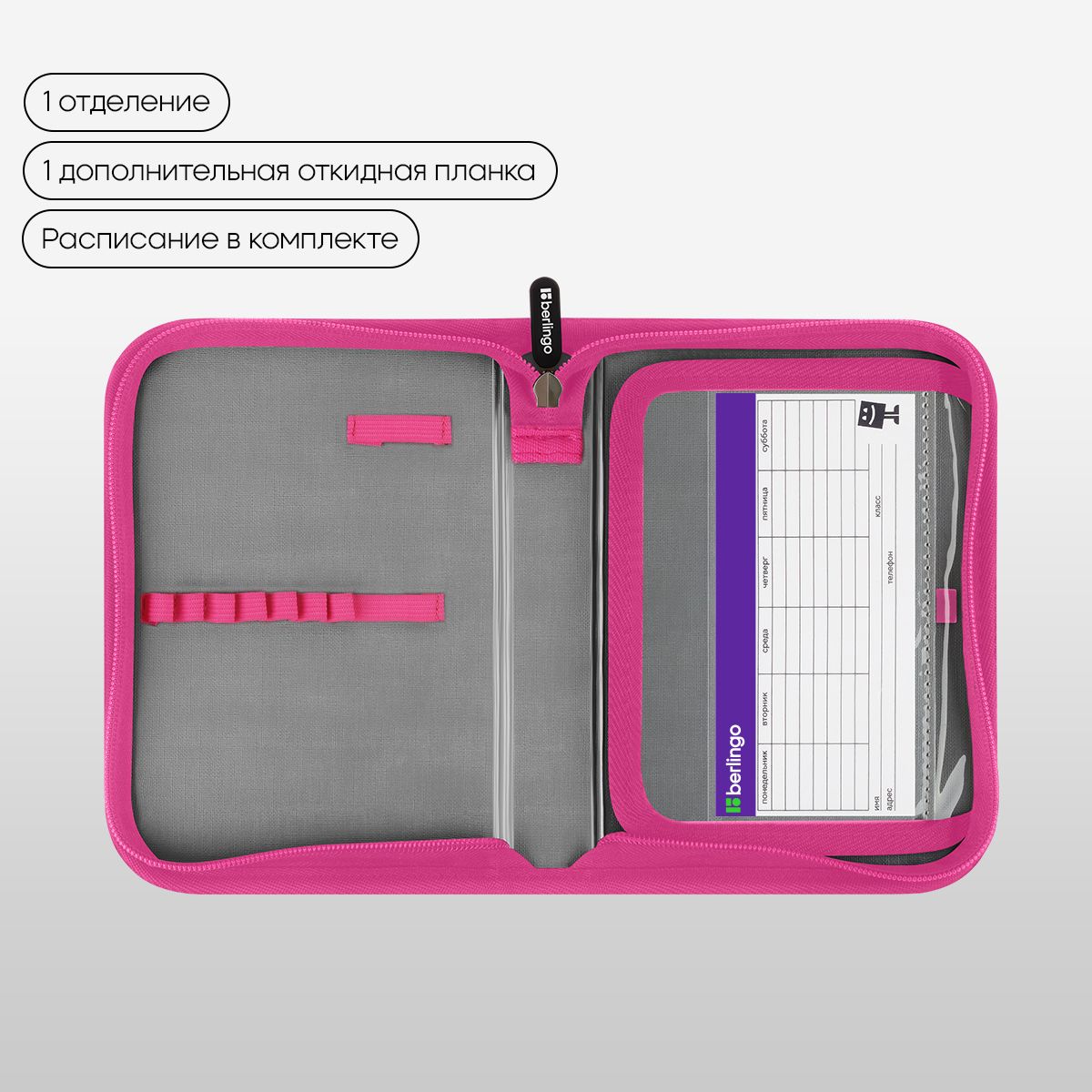 Лицевая поверхность сделана из износостойкого полиэстера, а внутренняя – из текстурного ПВХ. Пенал упакован в индивидуальный пакет с ярким тэгом. Поставляется без наполнения.
