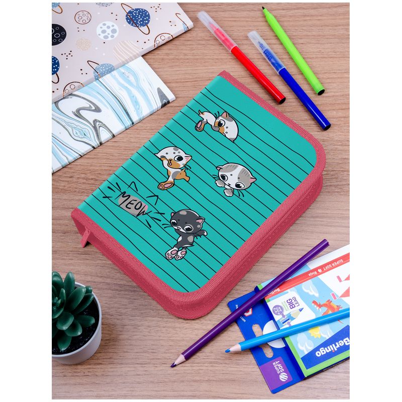 Пенал 1 отделение, 200*140*40 Berlingo "Kittens green", 2 откидные секции, полиэстер