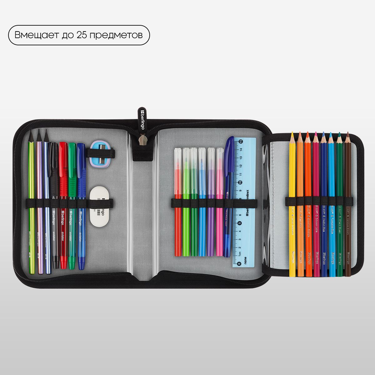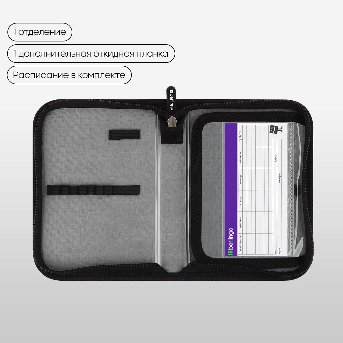 Лицевая поверхность сделана из износостойкого полиэстера, а внутренняя – из текстурного ПВХ. Пенал упакован в индивидуальный пакет с ярким тэгом. Поставляется без наполнения.