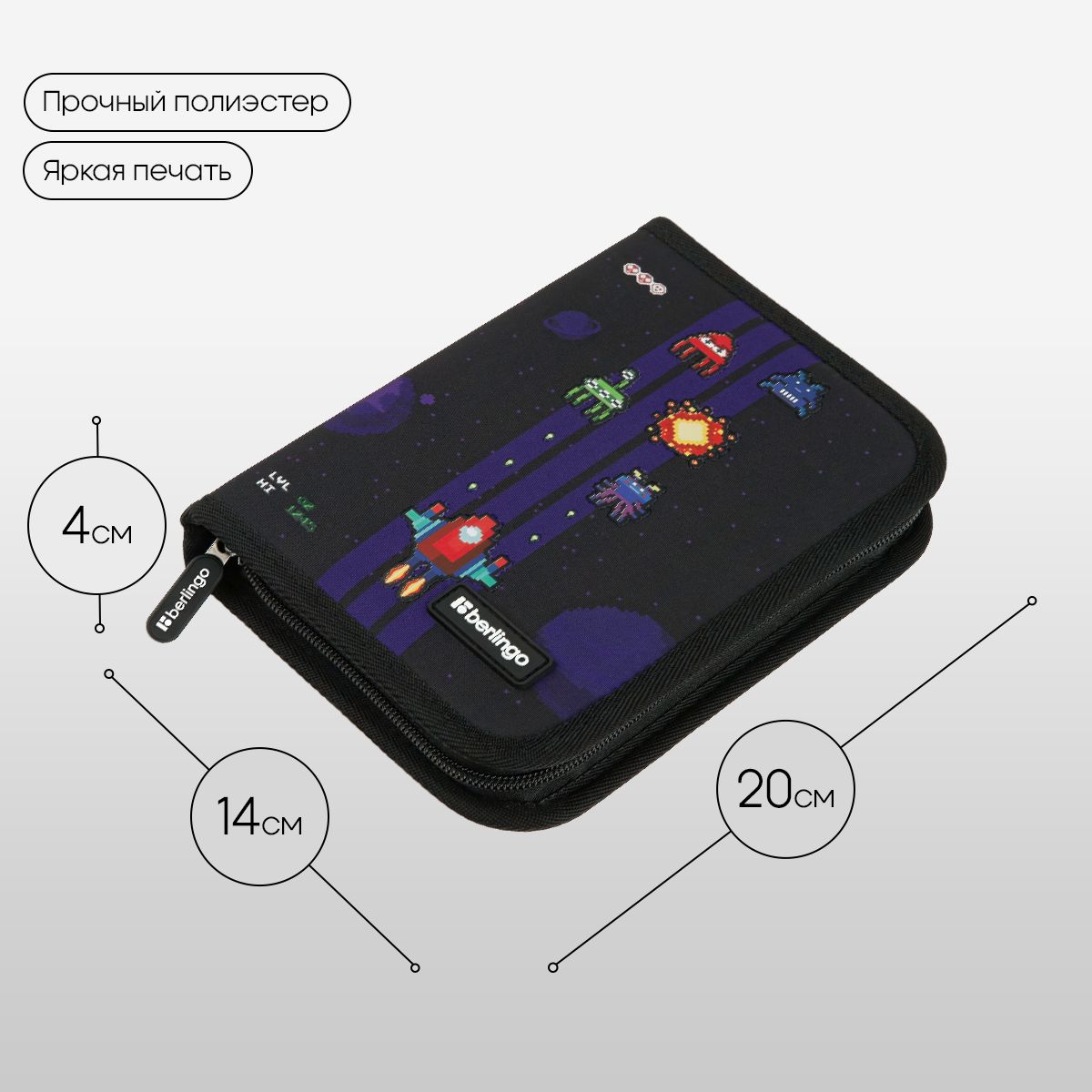Пенал 1 отделение, 200*140*40 Berlingo "Space Battle", дополнительная откидная секция, полиэстер