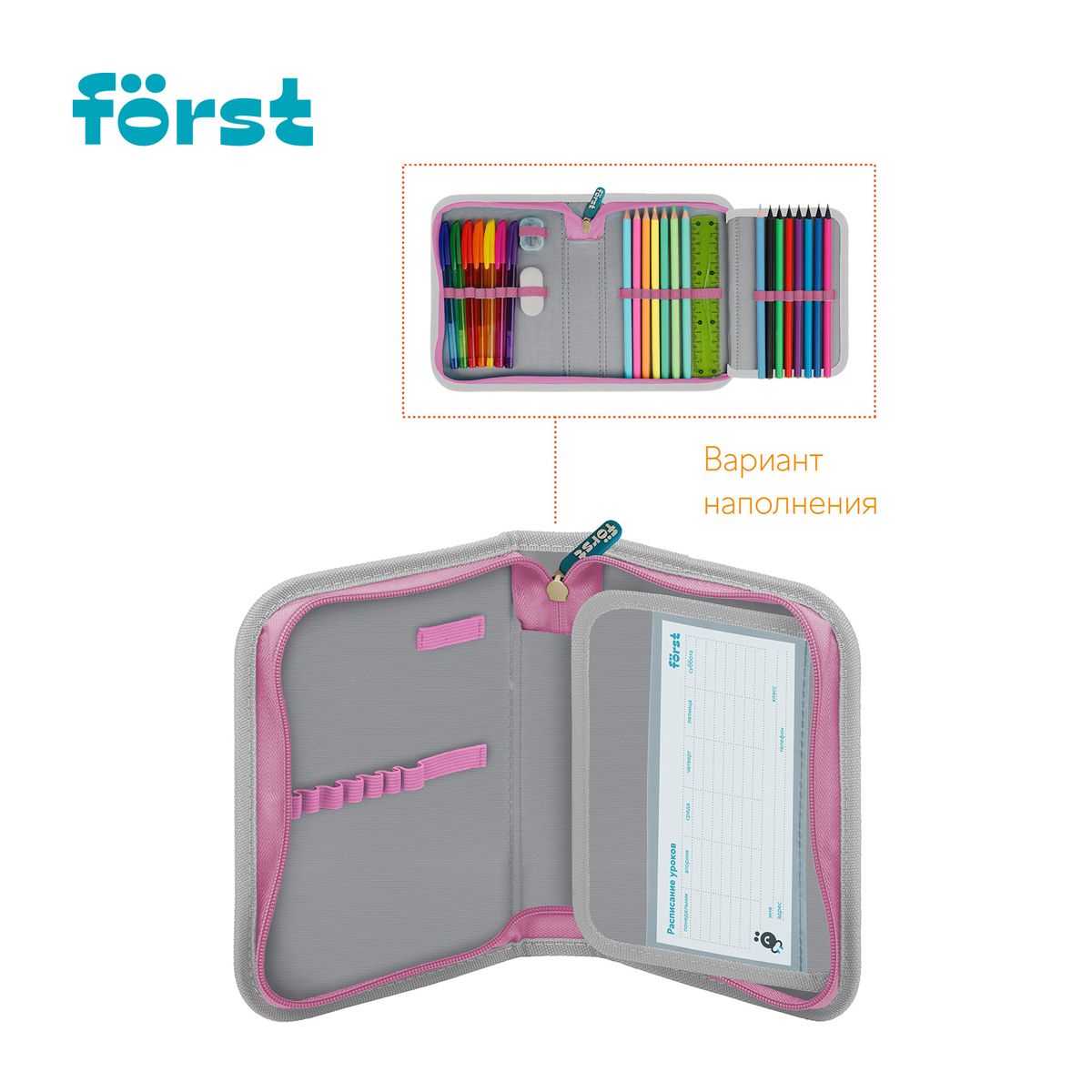 Лицевая поверхность сделана из износостойкого полиэстера с принтом, а внутренняя – из текстурного ПВХ. Пенал упакован в индивидуальный пакет с ярким тэгом. Поставляется без наполнения.