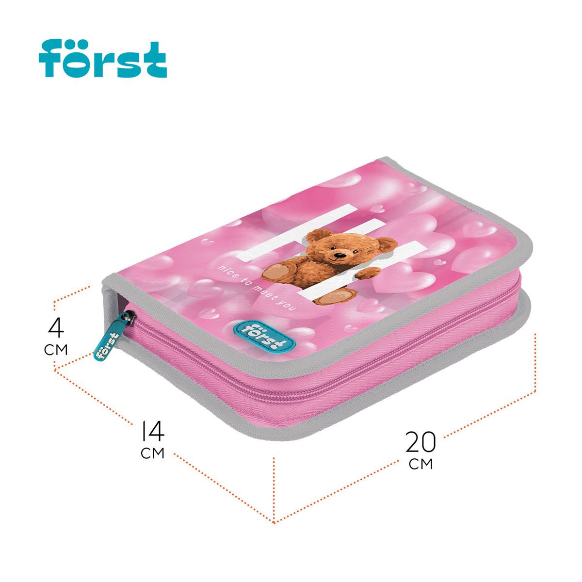 Пенал 1 отделение, 200*140*40 Först "Hi, Bear!", дополнительная откидная секция, полиэстер
