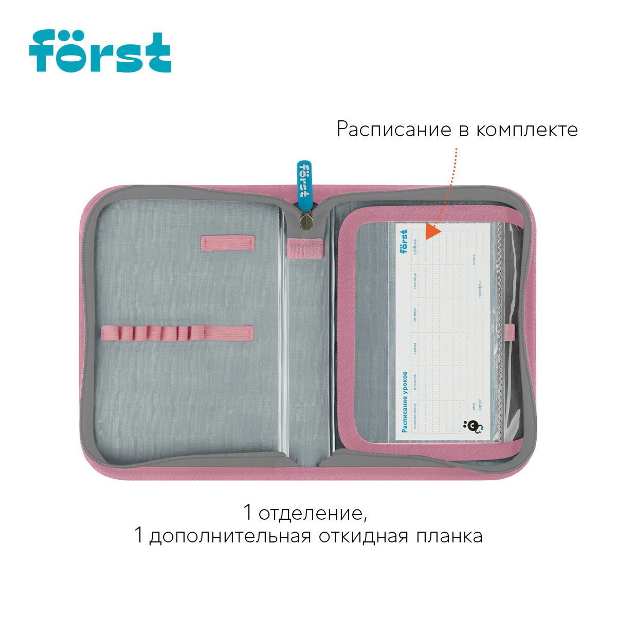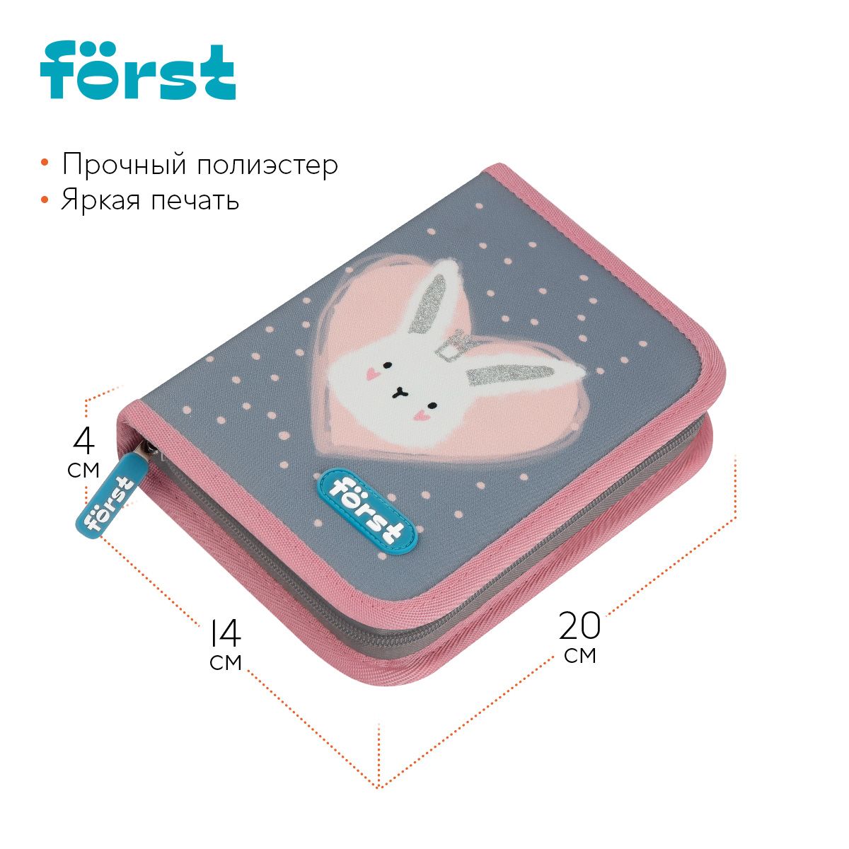 Пенал 1 отделение, 200*140*40 Först "Little Friend", дополнительная откидная секция, полиэстер