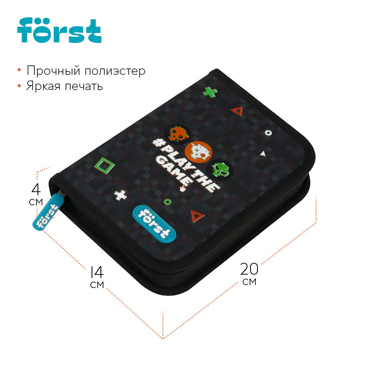 Пенал 1 отделение, 200*140*40 Först "Play the game", дополнительная откидная секция, полиэстер