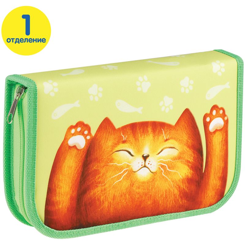 Пенал 1 отделение, 210*130 Мульти-Пульти "Lazy Cat", две откидные секции, ткань
