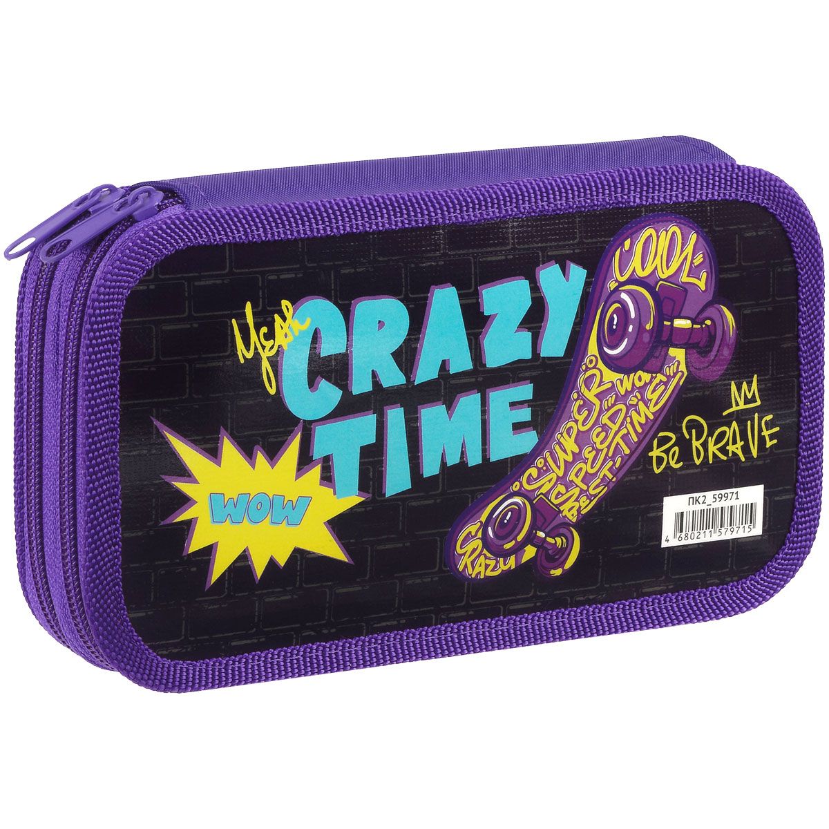 Пенал 2 отделения, 190*105 ArtSpace "Crazy time", ламинированный картон