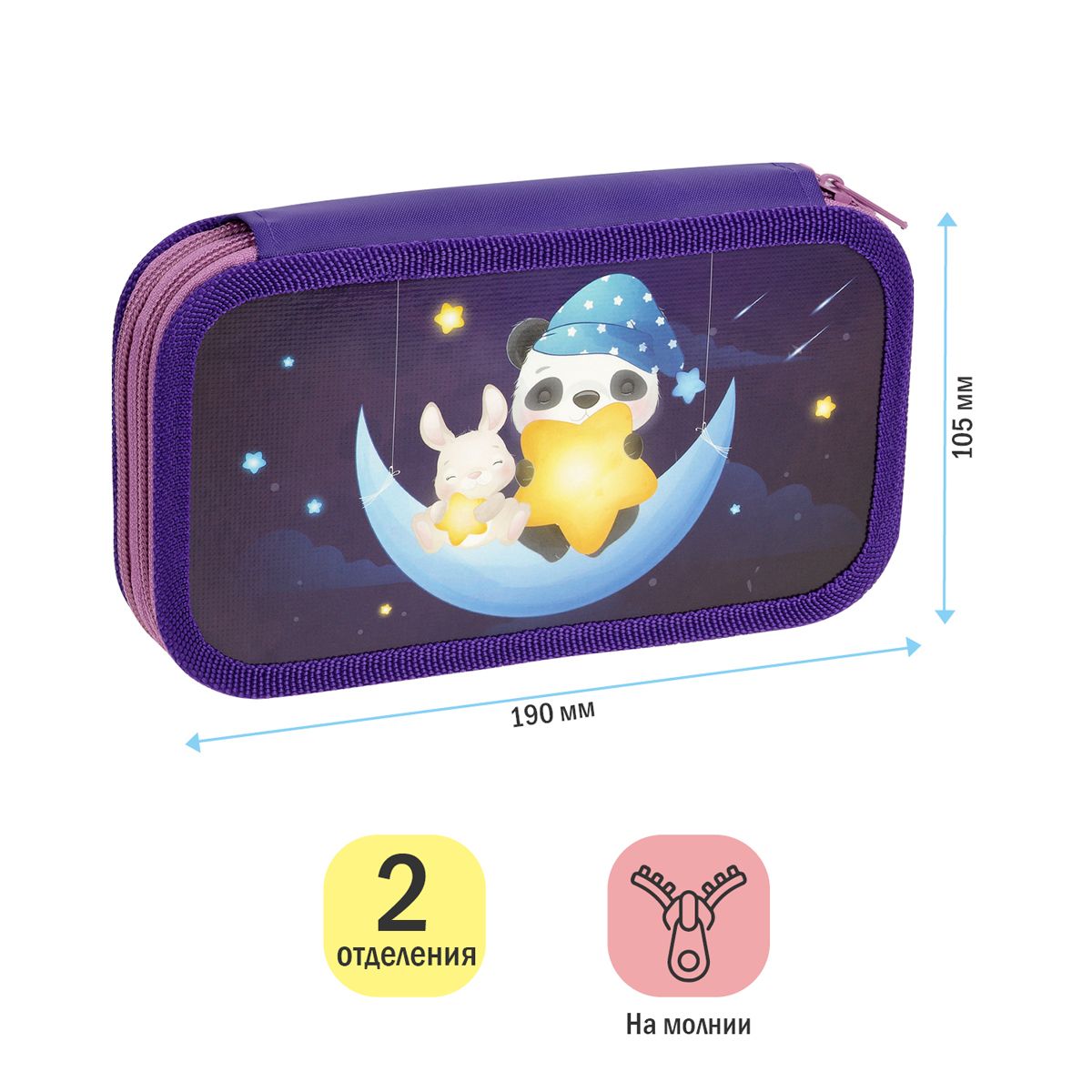 Пенал 2 отделения, 190*105 ArtSpace "Moon Light", ламинированный картон