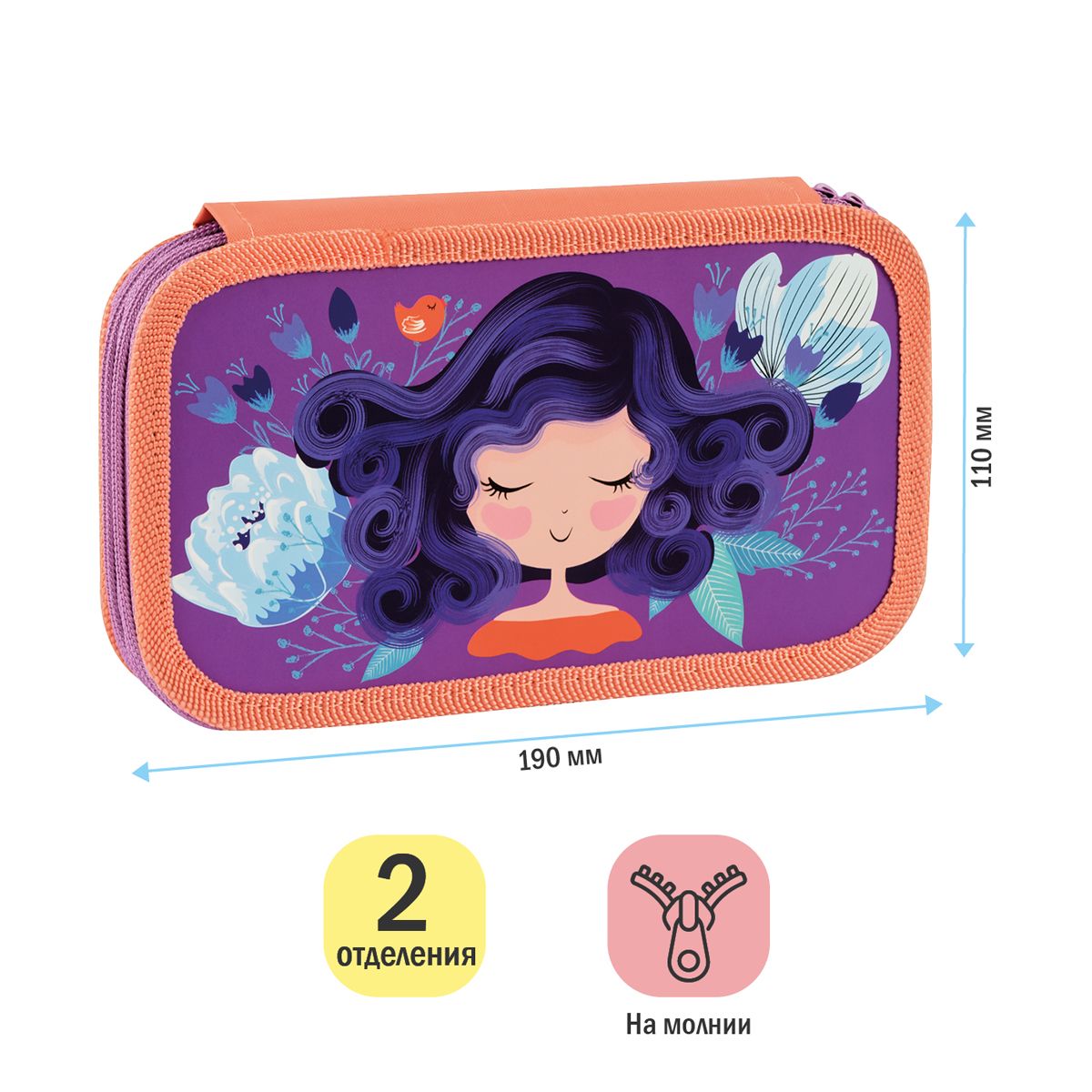 Пенал 2 отделения, 190*110 ArtSpace "Sweety", ламинированный картон, софт-тач