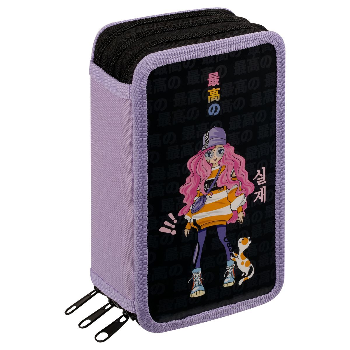 Пенал 3 отделения, 190*110 ArtSpace "Kawaii girl", ламинированный картон