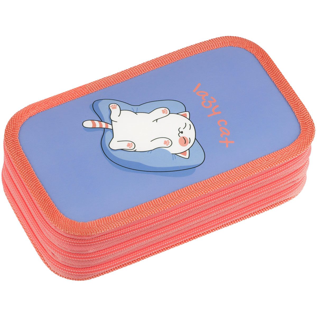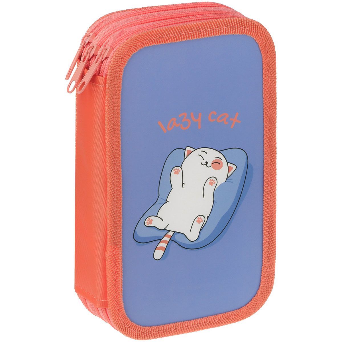 Пенал 3 отделения, 190*110 ArtSpace "Lazy cat", ламинированный картон, софт-тач