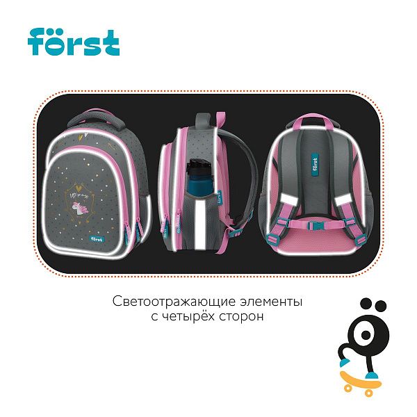 • Рюкзаки для школьников — с ортопедической спинкой, плотным дном и светоотражающими элементами.