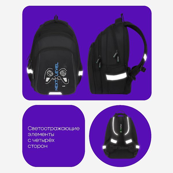 - Рюкзаки для школьников — с ортопедической спинкой, плотным дном и светоотражающими элементами.