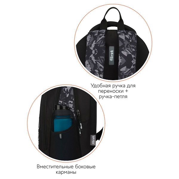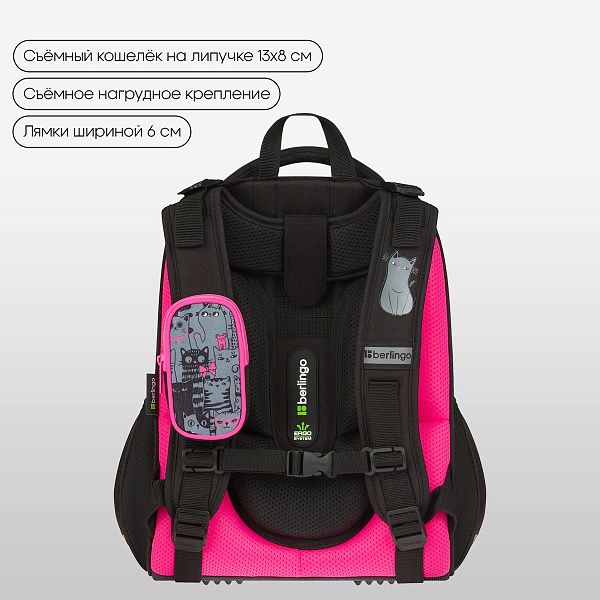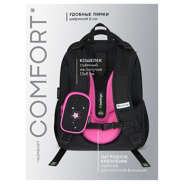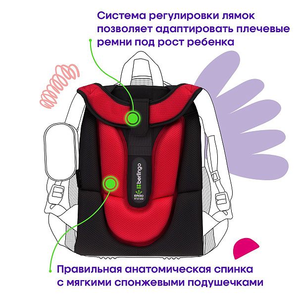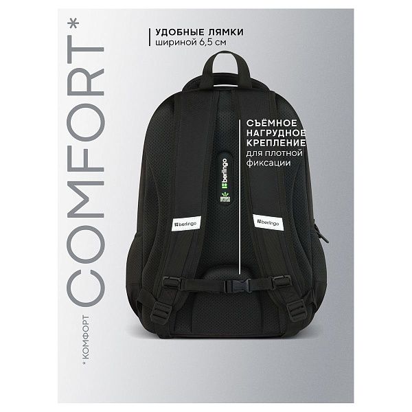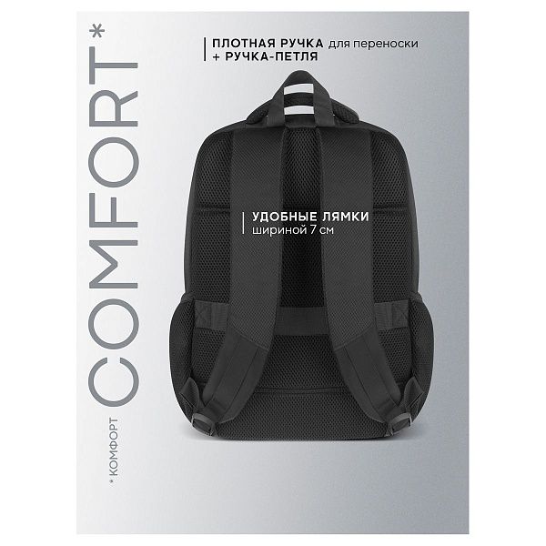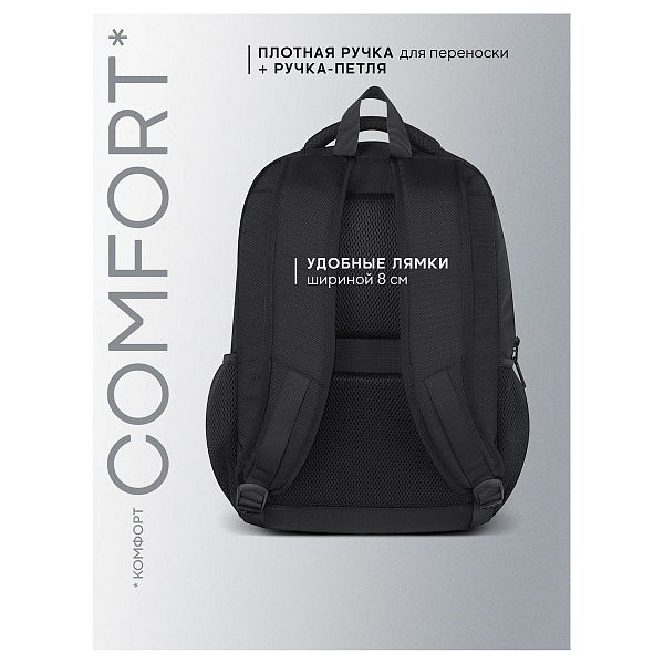 - Эргономика — наличие ортопедической спинки и широких лямок для снижения нагрузки на спину.