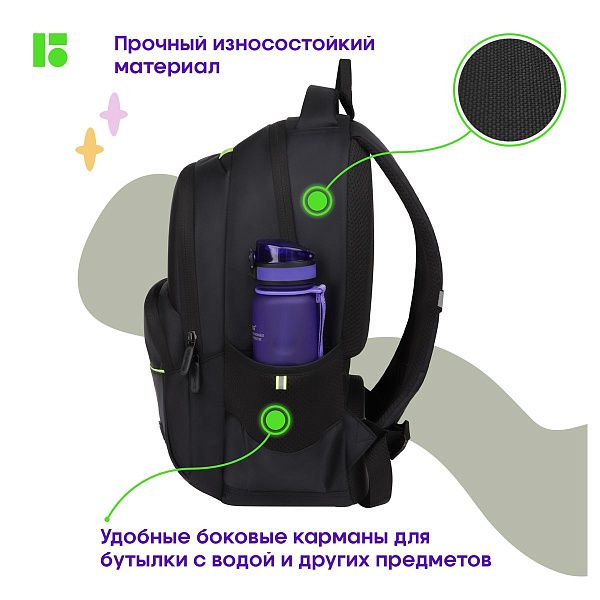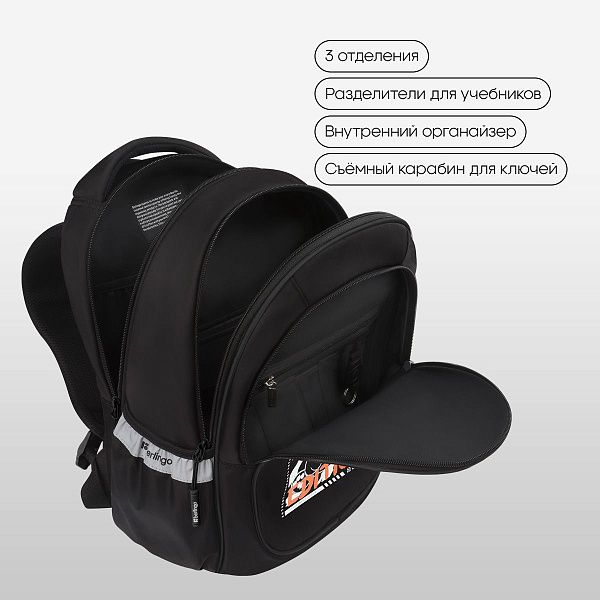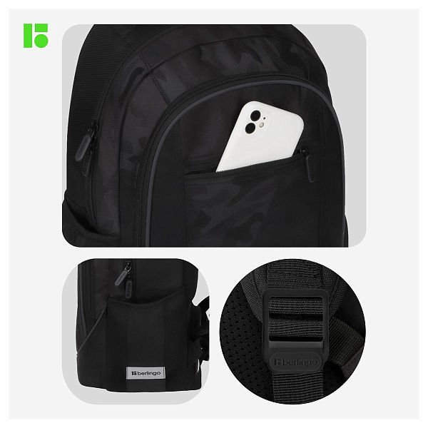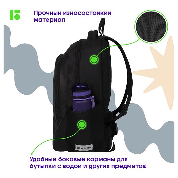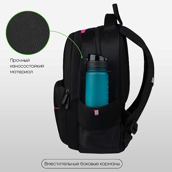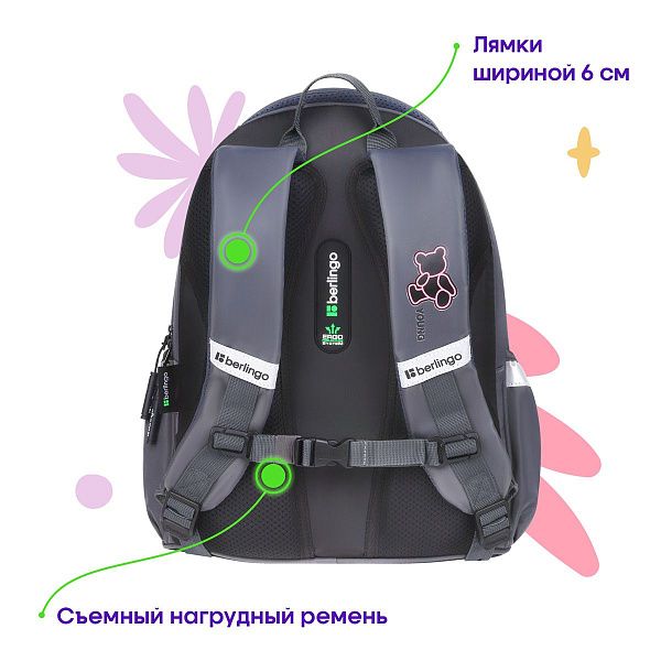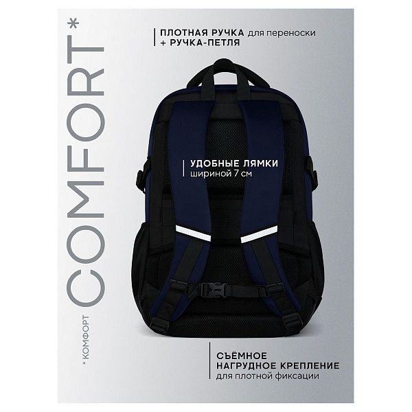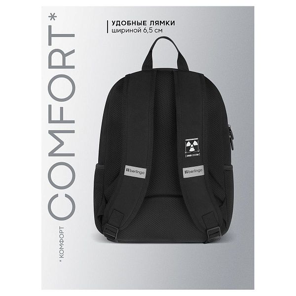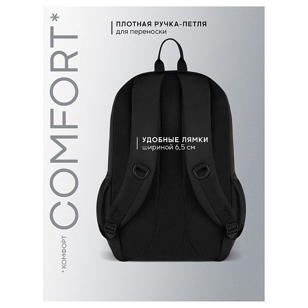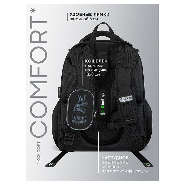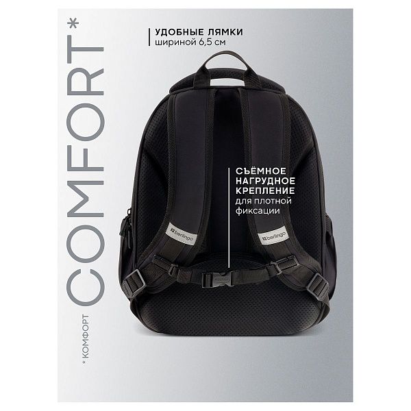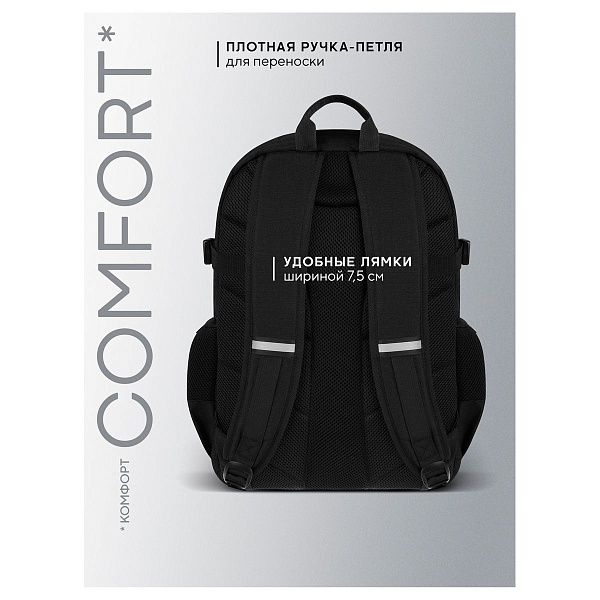 - Эргономика — наличие ортопедической спинки и широких лямок для снижения нагрузки на спину.