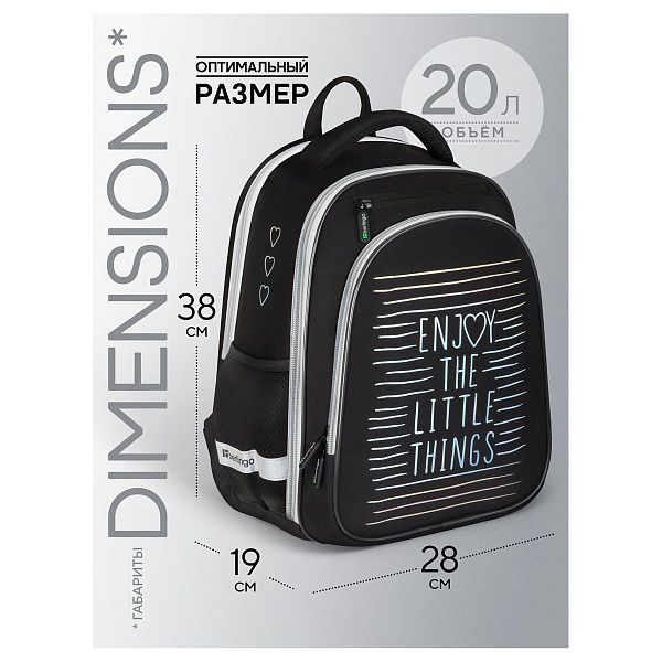 - Размер и вместимость — рюкзак или ранец должен помещать все необходимые вещи, но не быть слишком тяжёлым для ребёнка.