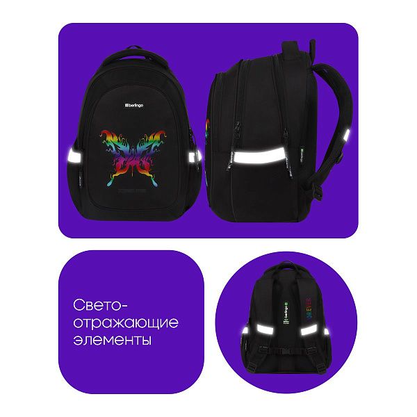 - Эргономика — наличие ортопедической спинки и широких лямок для снижения нагрузки на спину.