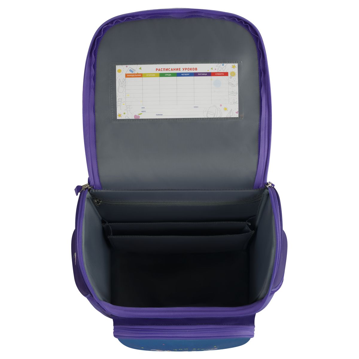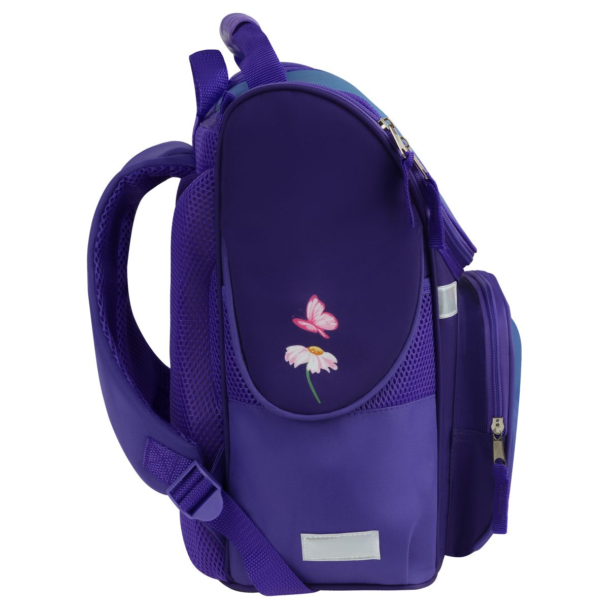 Анатомическая спинка и регулируемые широкие лямки обеспечат равномерную нагрузку на спину, сохраняя правильную осанку. Ранец изготовлен из прочного полиэстера, имеет непромокаемое дно из ПВХ-материала. Светоотражающие элементы на передней и боковых частях, а также на лямках помогут обезопасить ребёнка на дороге в условиях плохой видимости. Ранец оснащён плотной ручкой и петлёй для подвешивания на крючок.