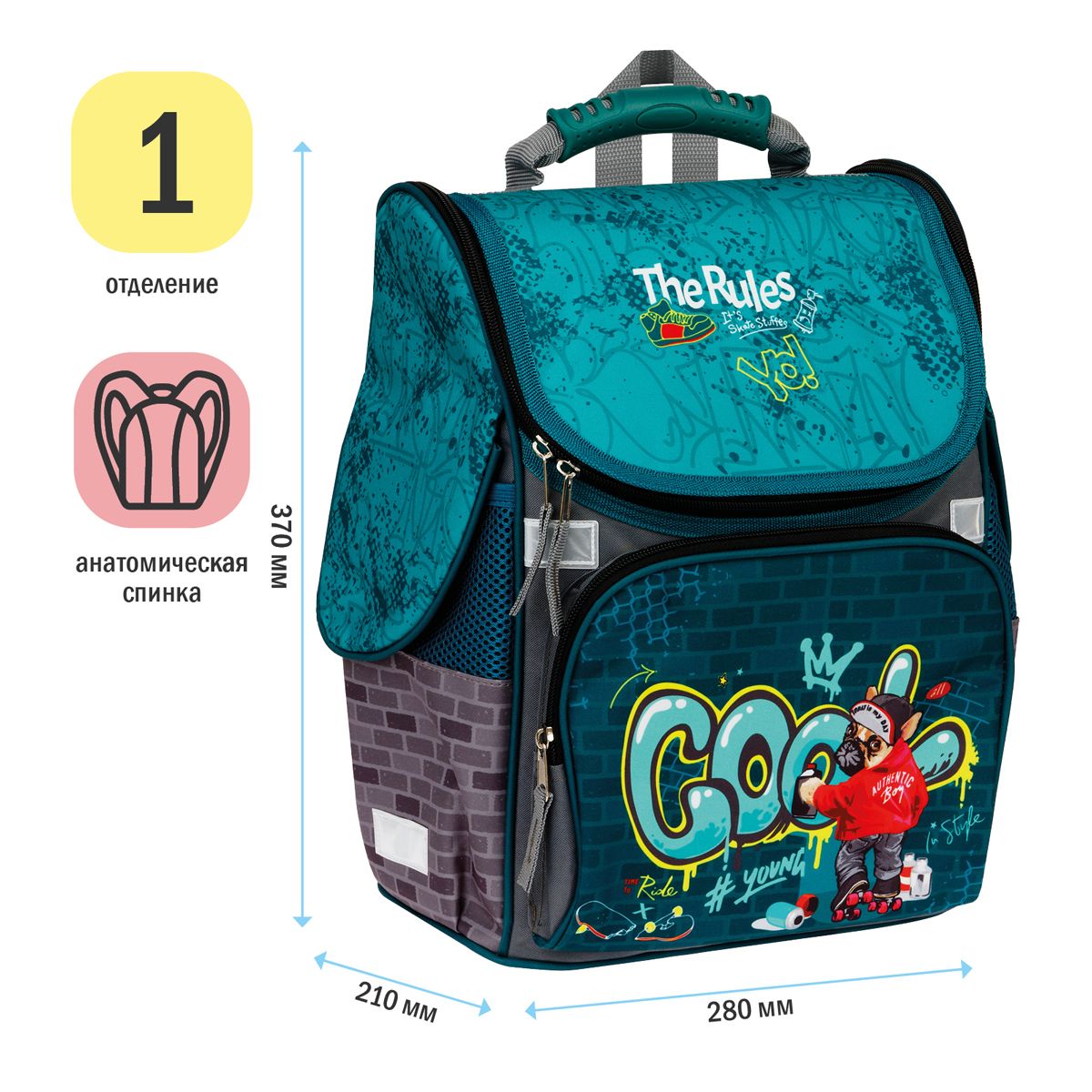 Ранец ArtSpace Junior "Cool" 37*28*21см, 1 отделение, 3 кармана, анатомическая спинка