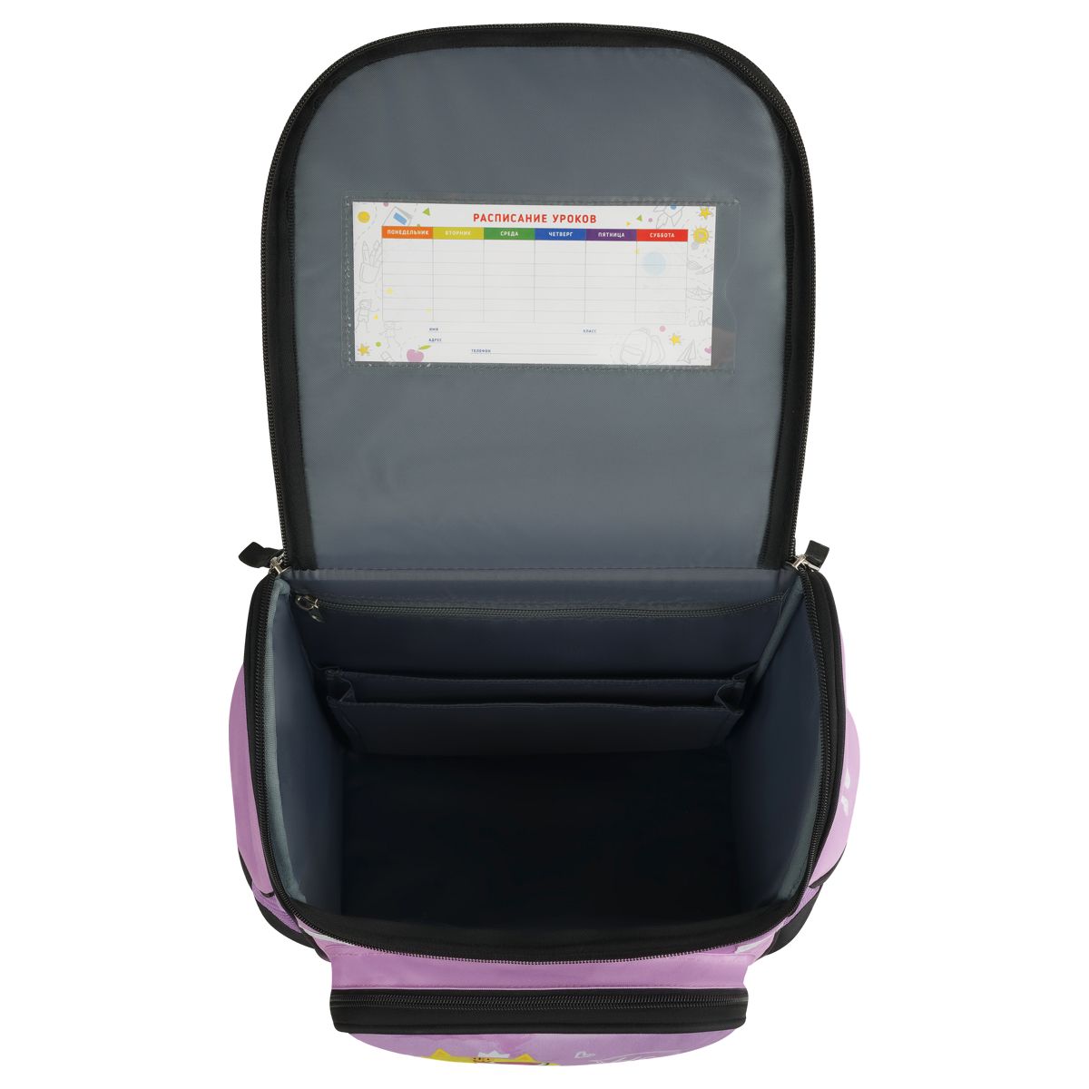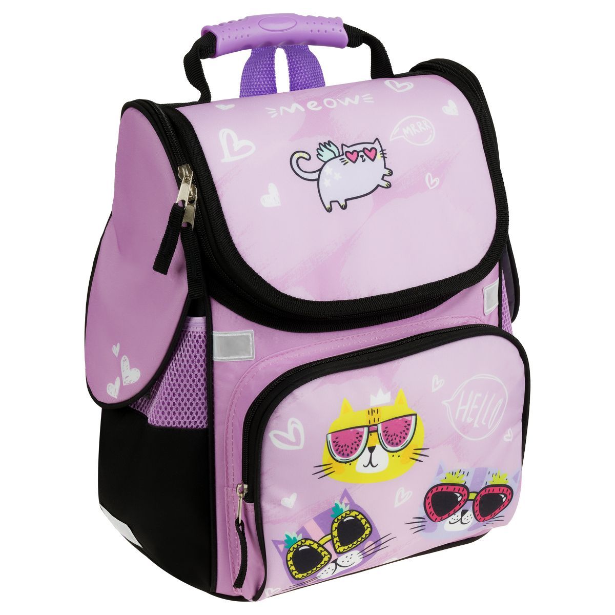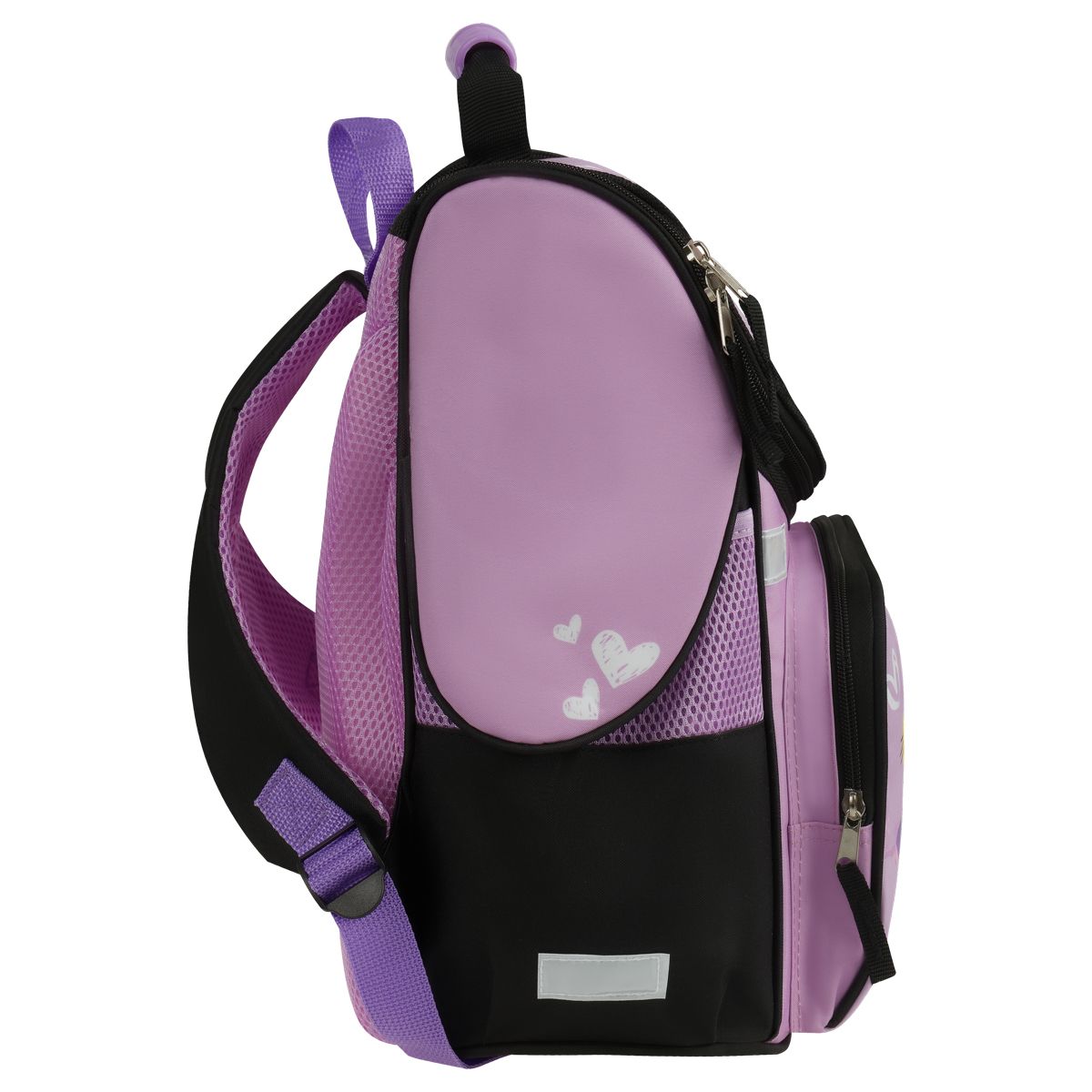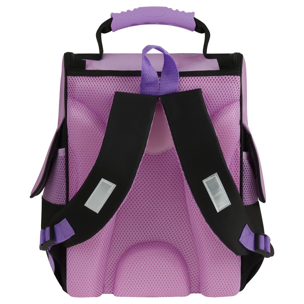 Анатомическая спинка и регулируемые широкие лямки обеспечат равномерную нагрузку на спину, сохраняя правильную осанку. Ранец изготовлен из прочного полиэстера, имеет непромокаемое дно из ПВХ-материала. Светоотражающие элементы на передней и боковых частях, а также на лямках помогут обезопасить ребёнка на дороге в условиях плохой видимости. Ранец оснащён плотной ручкой и петлёй для подвешивания на крючок.