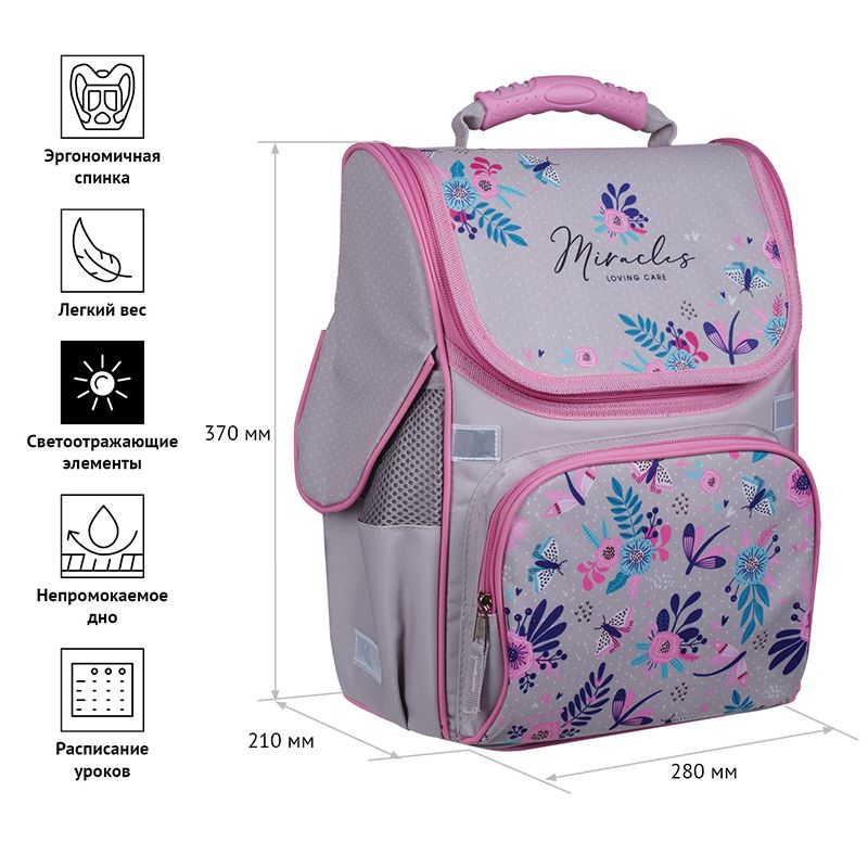 Ранец ArtSpace Junior "Miracles" 37*28*21см, 1 отделение, 3 кармана, анатомическая спинка