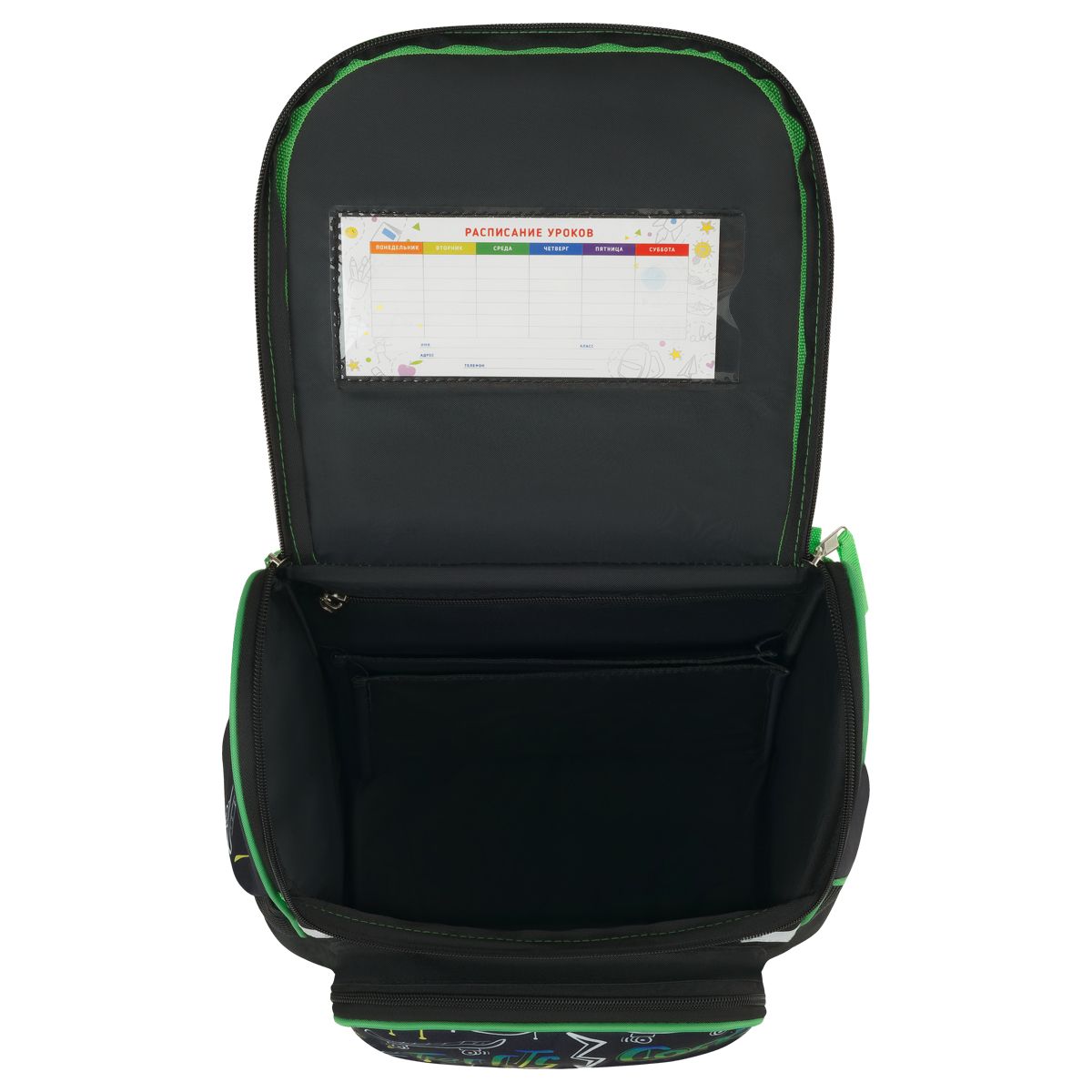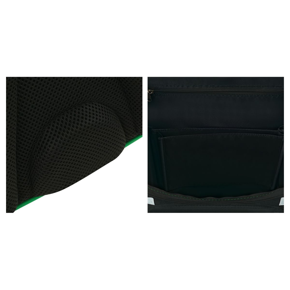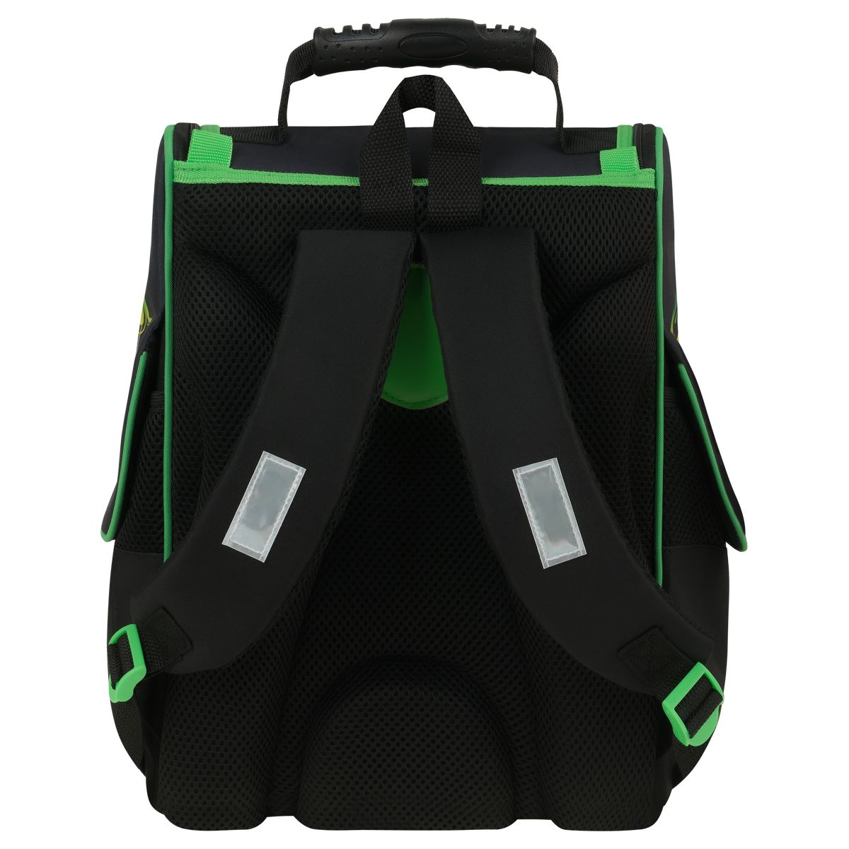 Анатомическая спинка и регулируемые широкие лямки обеспечат равномерную нагрузку на спину, сохраняя правильную осанку. Ранец изготовлен из прочного полиэстера, имеет непромокаемое дно из ПВХ-материала. Светоотражающие элементы на передней и боковых частях, а также на лямках помогут обезопасить ребёнка на дороге в условиях плохой видимости. Ранец оснащён плотной ручкой и петлёй для подвешивания на крючок.