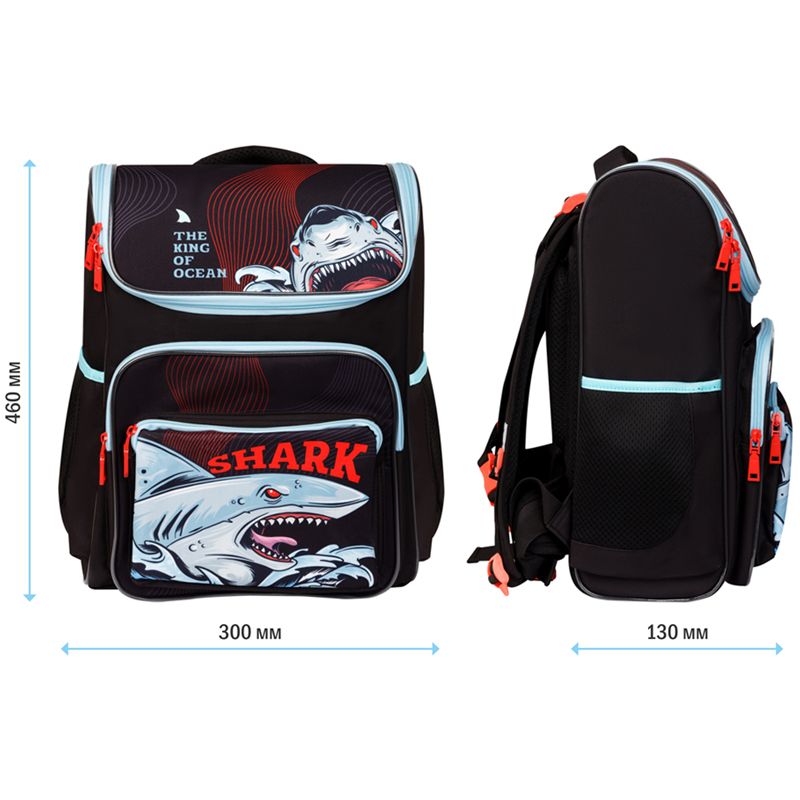 Ранец ArtSpace облегченный Happy School "Shark" 39*28*18см, 1 отделение, 4 кармана, анатомическая спинка