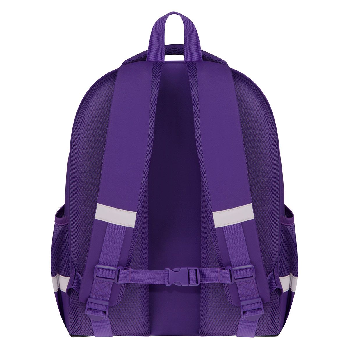 Непромокаемое дно сделано из ПВХ. Светоотражающие элементы на передней и боковых частях, а также на лямках помогут обезопасить ребёнка на дороге в условиях плохой видимости. Ранец оснащён плотной ручкой и петлёй для подвешивания на крючок.
